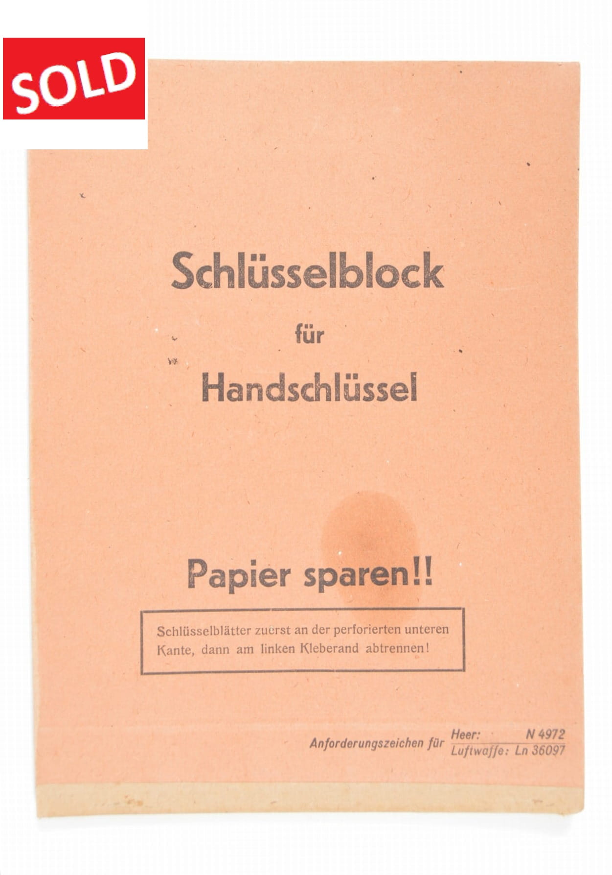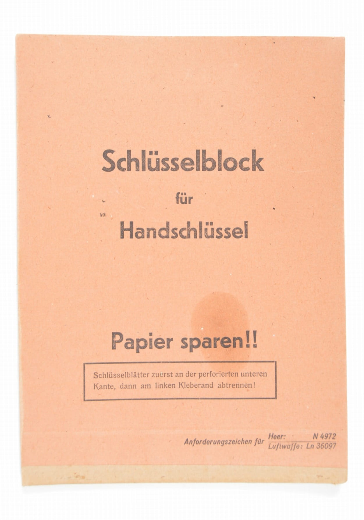 Blok papieru do kalkowania( Schlüsselblock für Handschlüssel) w stanie bardzo dobrym, kompletny, wszystkie