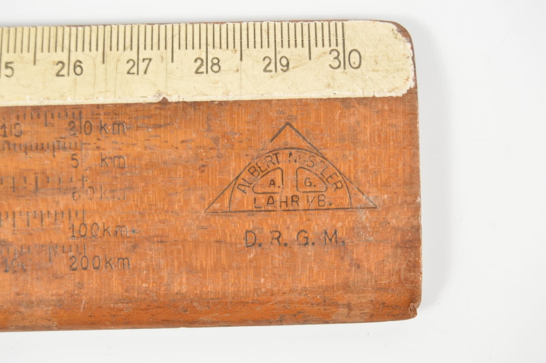 Drewniana linijka Albert Nestler D.R.G.M o długości 30 cm. Stan zachowania bardzo dobry.