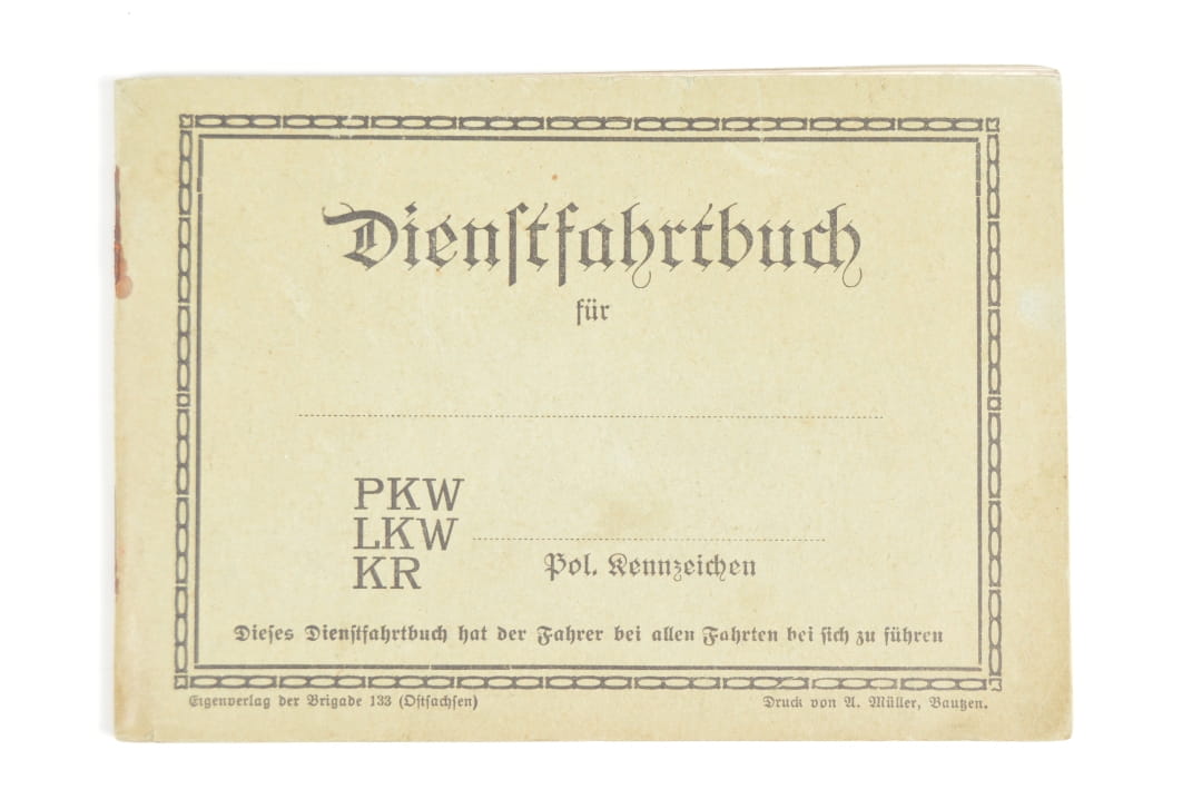 Książeczka Dienstfahrtbuch przeznaczona do ewidencji tras, przebiegu, celów podróży, zużycia paliwa oraz innych istotnych informacji.