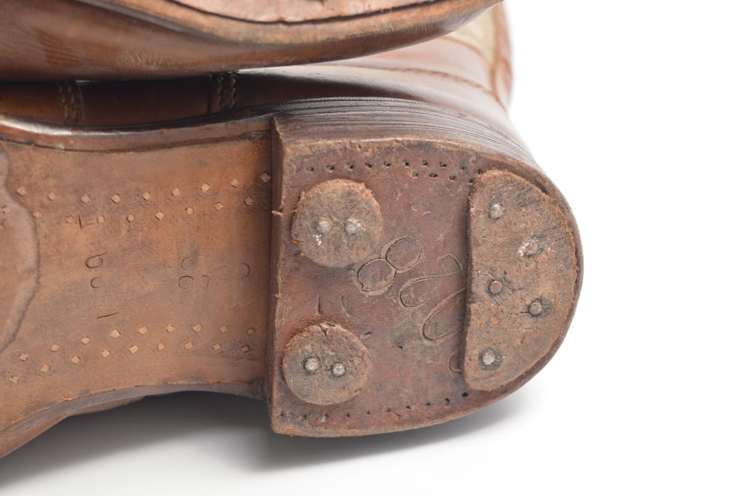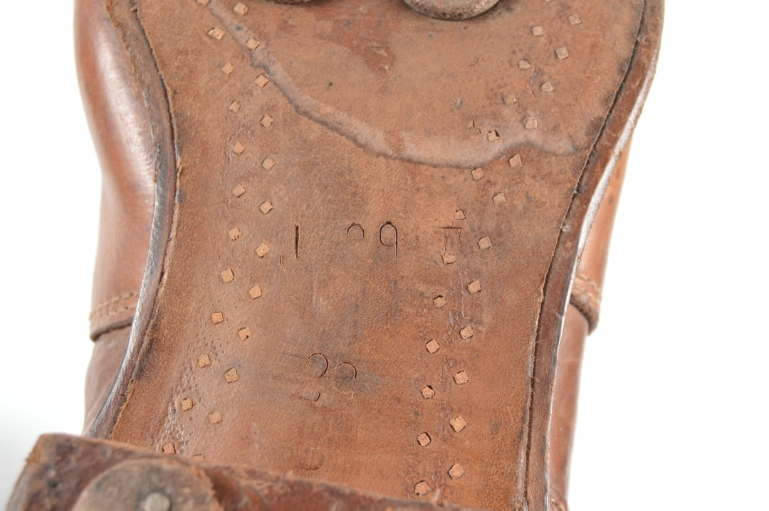 Buty sygnowane kodem RBN, rokiem 1944 oraz rozmiarem 29