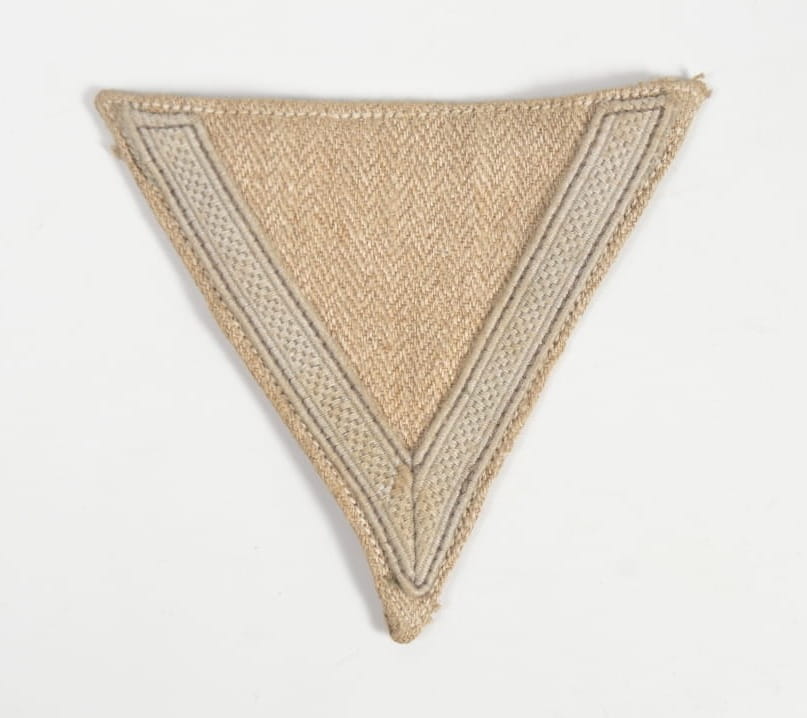 Szewron Gefreitera( Dienstgradabzeichen)- starszego szeregowego. Stopień przyszywanym na rękaw bluzy drelichu