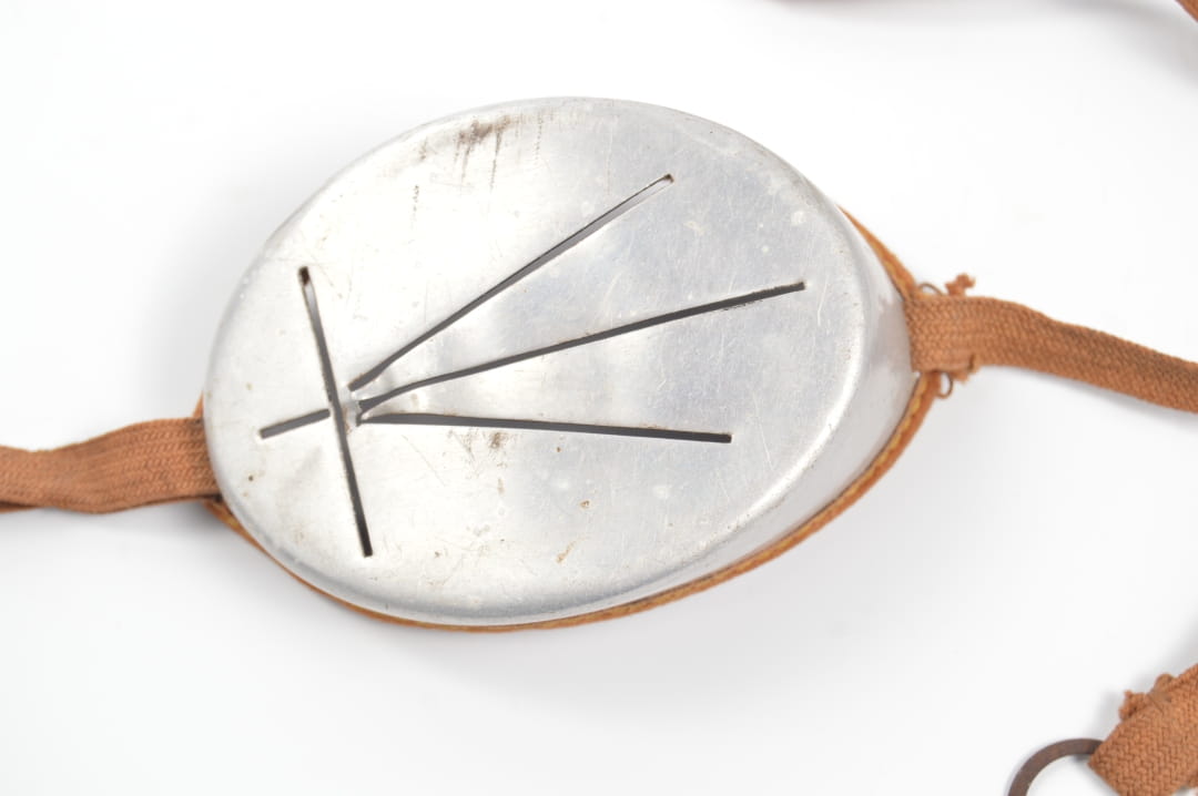 Śnieżne gogle strzelców górskich (Gebirgsjäger Schnee Schutzbrille) w stanie dobrym, taśmy zwężające delikatnie rozciągnięte. Gogle wykonane z aluminium.