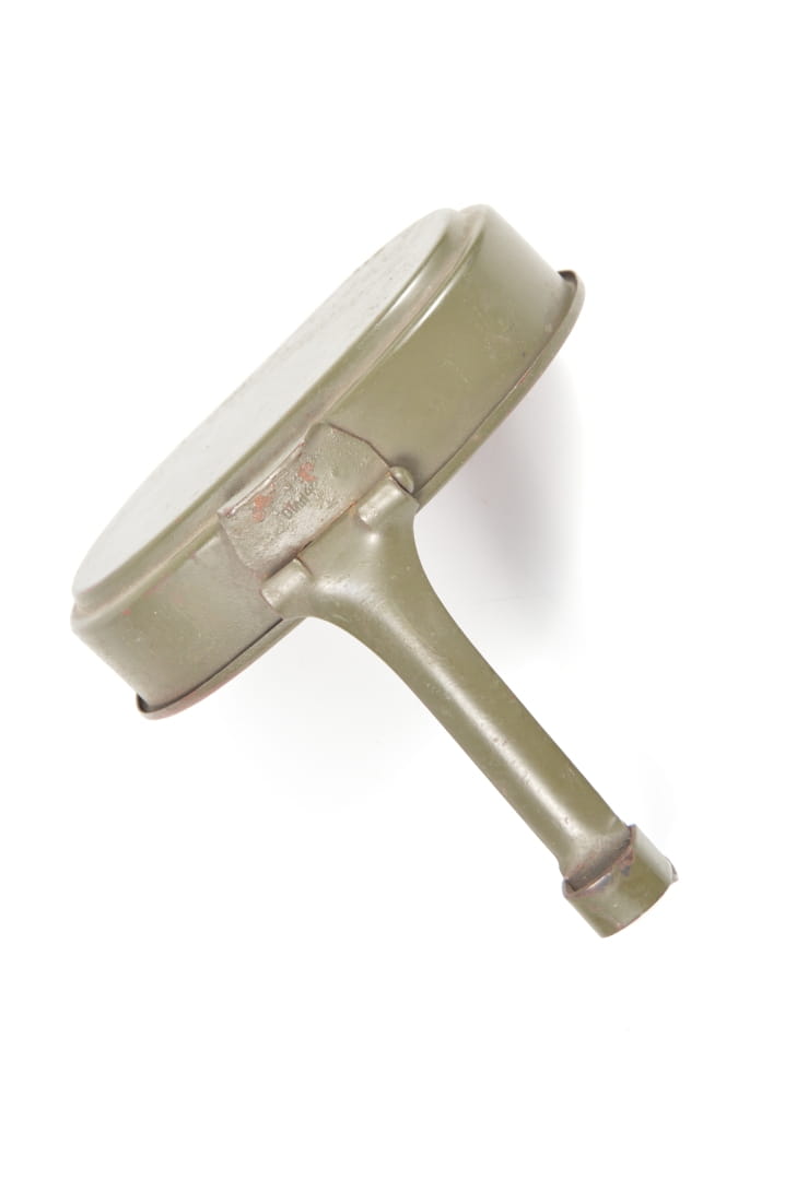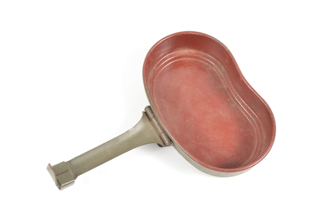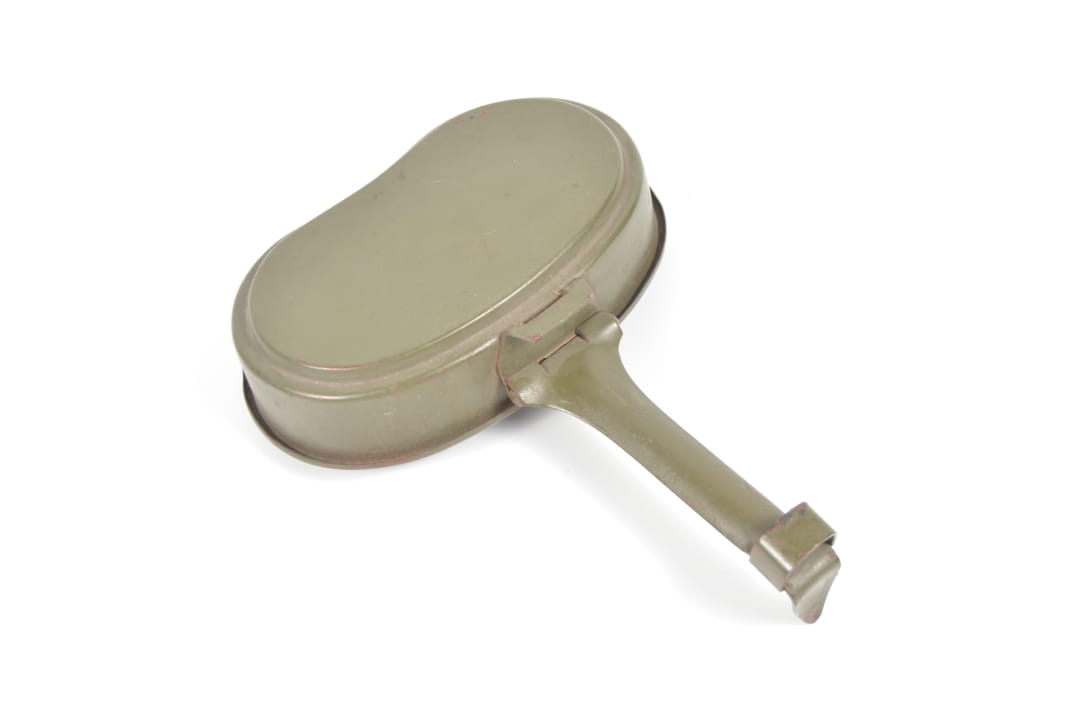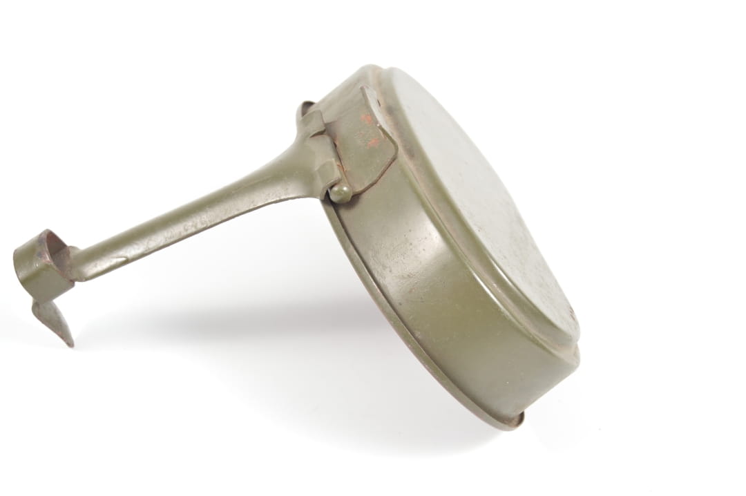 Góra menażki wykonana ze stali, w orginalnej farbie. Stan zachowania bardzo dobry, wygląda na nieużywaną.