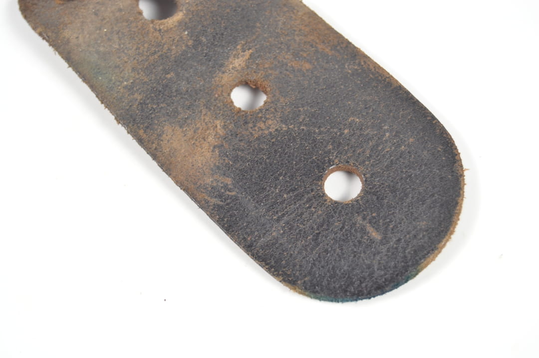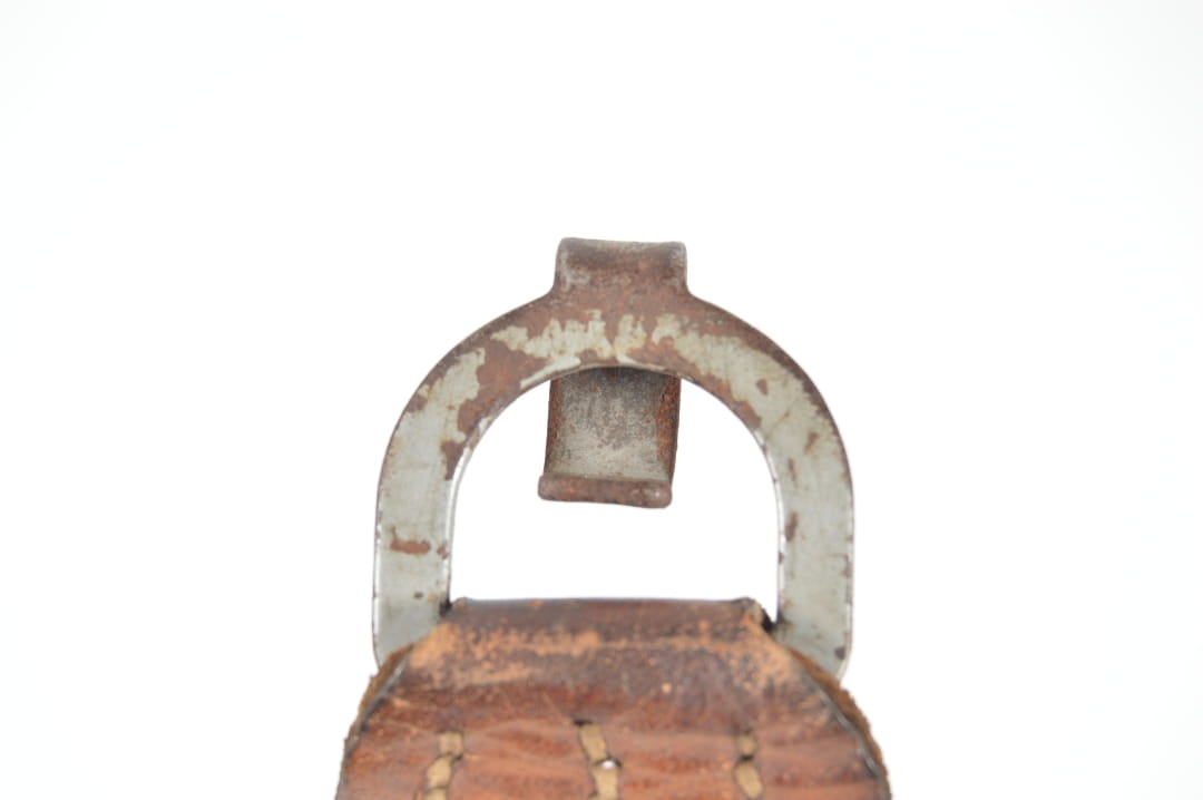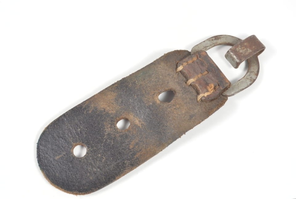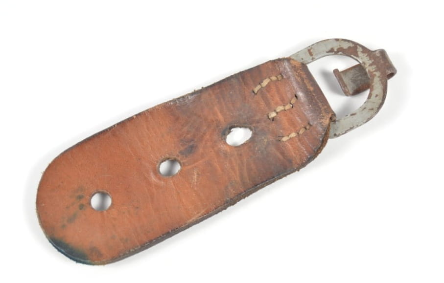 Hak wykonany ze skóry wraz z metalowym zaczepem. Stan zachowania dobry.