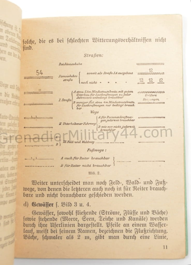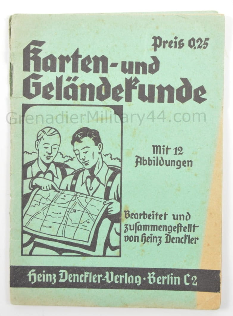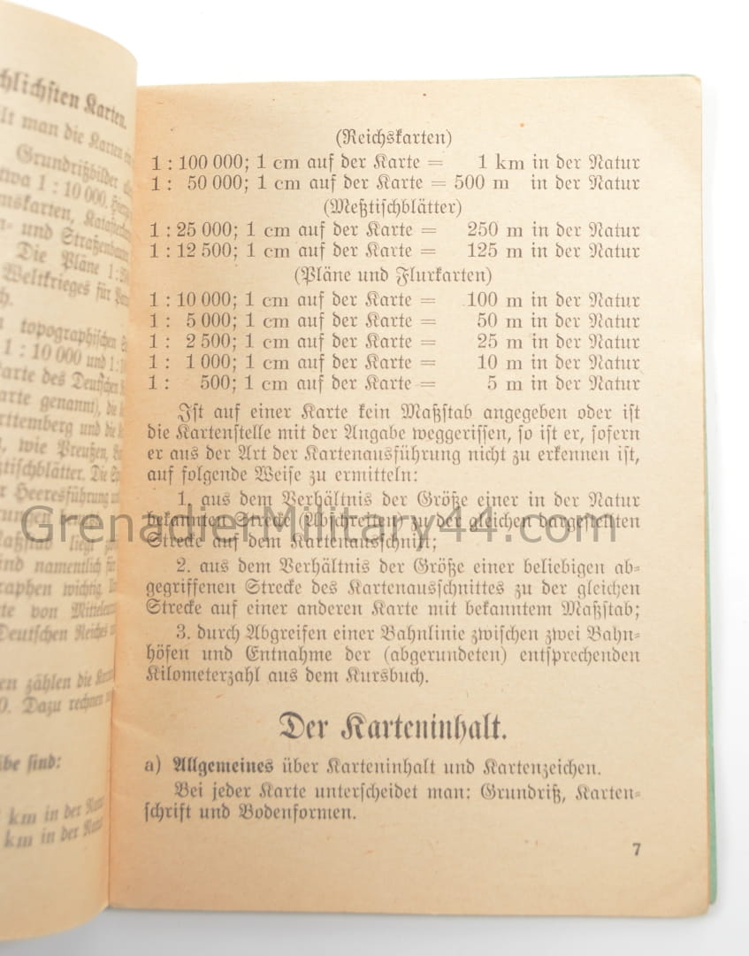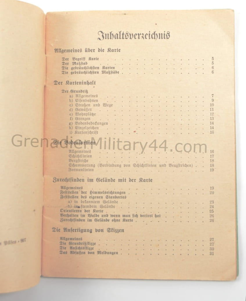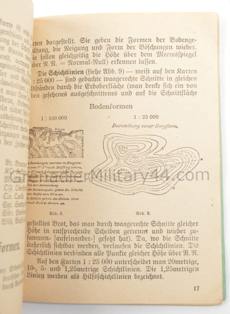 Instrukcja nauka o mapach i terenie( Karten- und Geländekunde) w stanie bardzo dobrym, kompletna, wszystkie strony obecne. Okładka delikatnie wyblaknięta