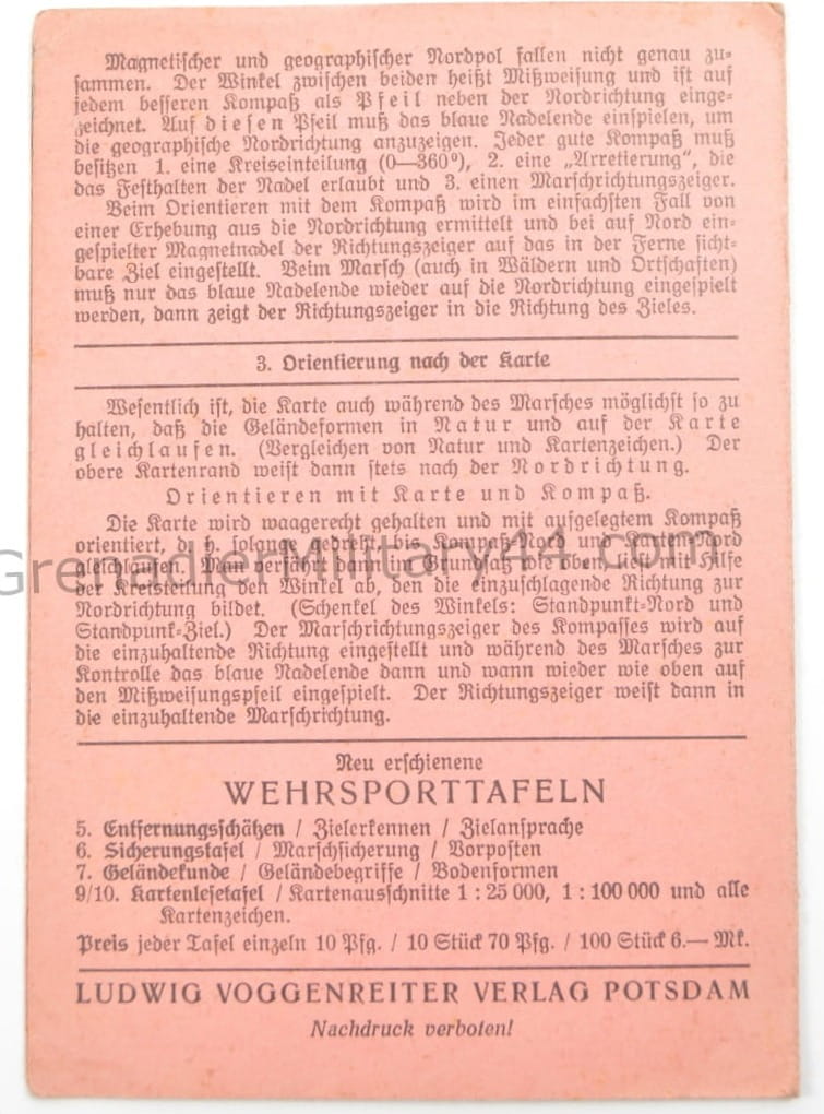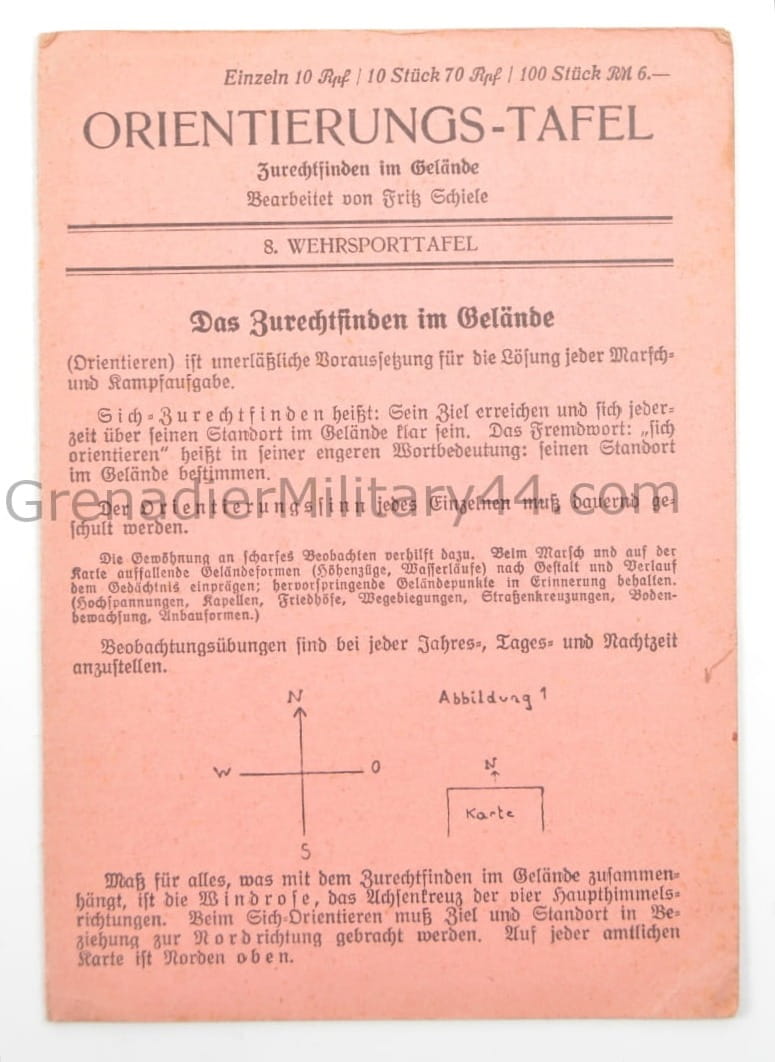 Instrukcja orientacji w terenie( ORIENTIERUNGS-TAFEL) w stanie bardzo dobrym, kompletna.