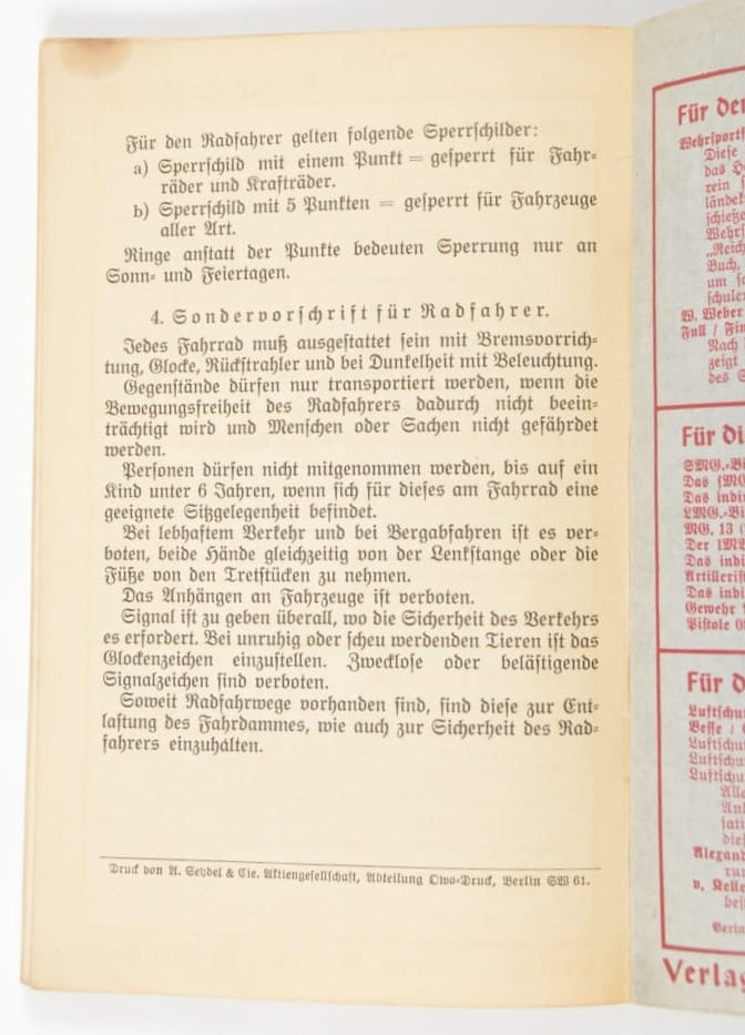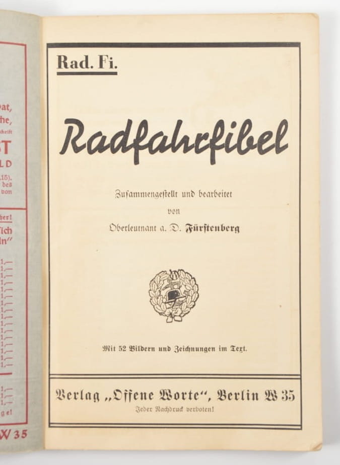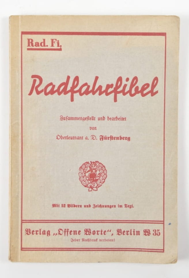 Instrukcja( Radfahrfibel) z okresu międzywojennego dla cyklistów.