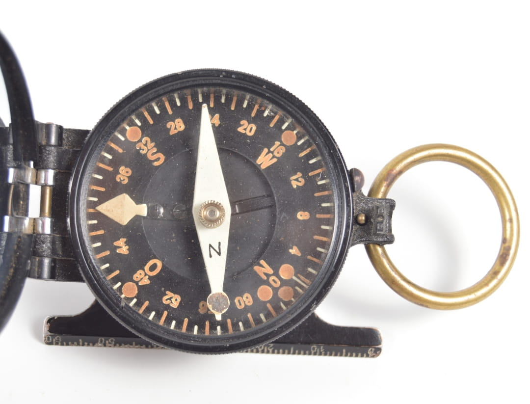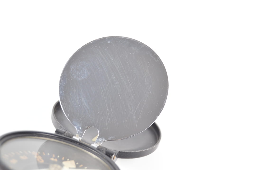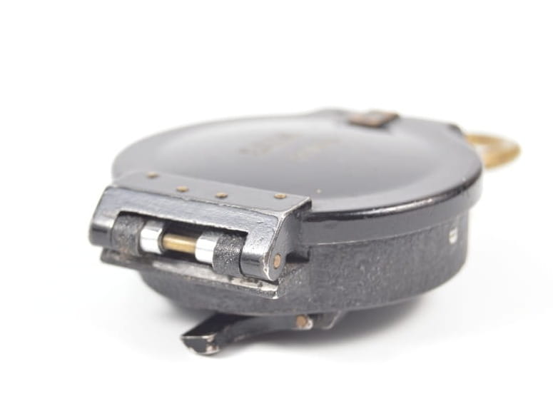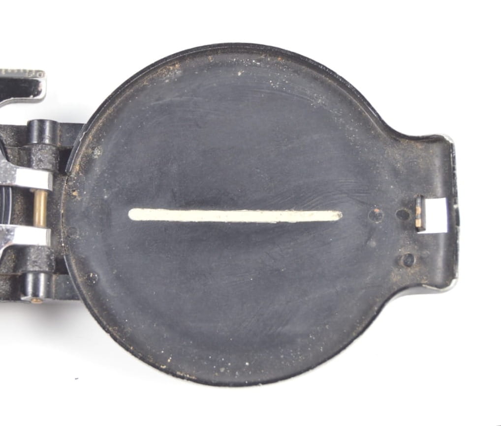 Korpus kompasu wykonany z aluminium z elementami mosiężnymi. Kompas w stanie bardzo dobrym, sprawnie wskazuje