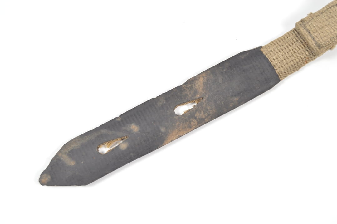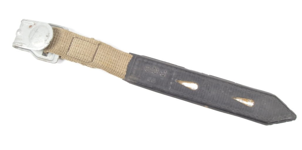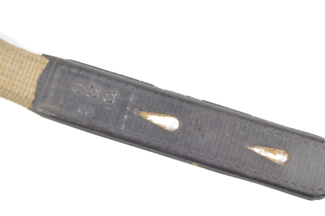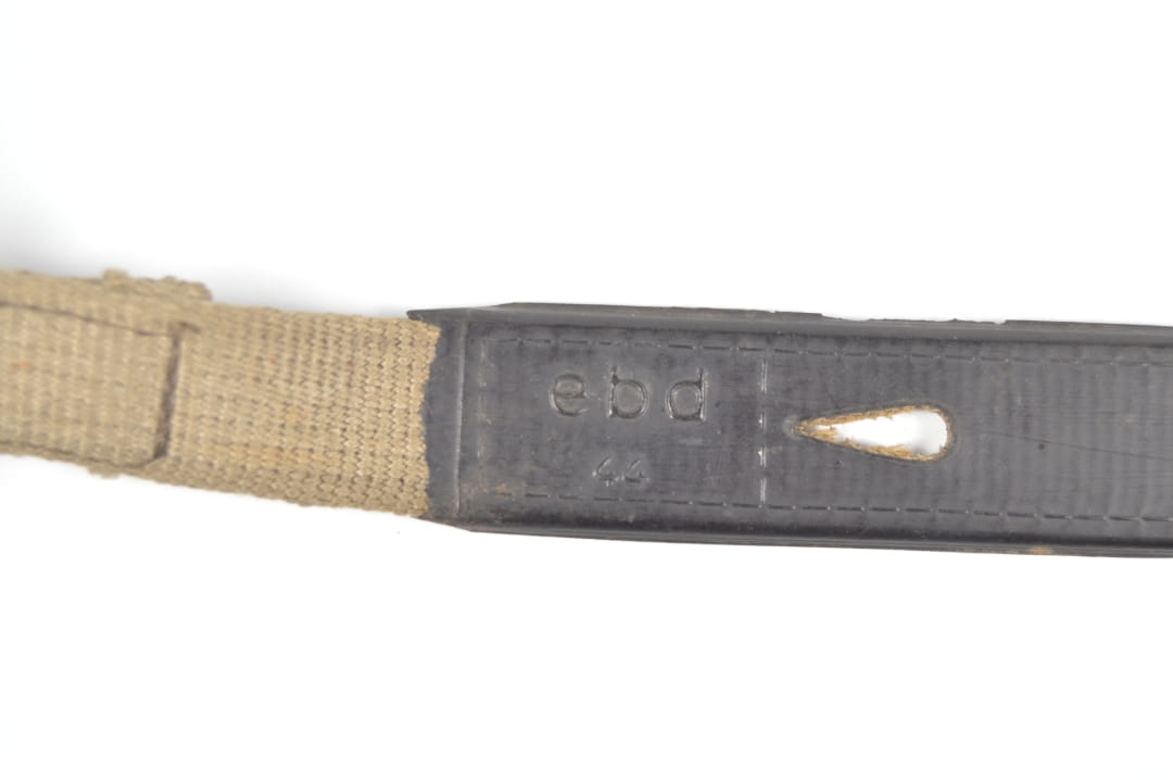 Późnowojenny krótki pasek od puszki na maskę przeciwgazową. Pasek sygnowany ebd 44, czyli Patra A.-G., Erzeugung techn. Gummiwaren, Napajedl/Mähren 1944rok.
