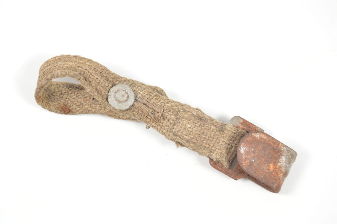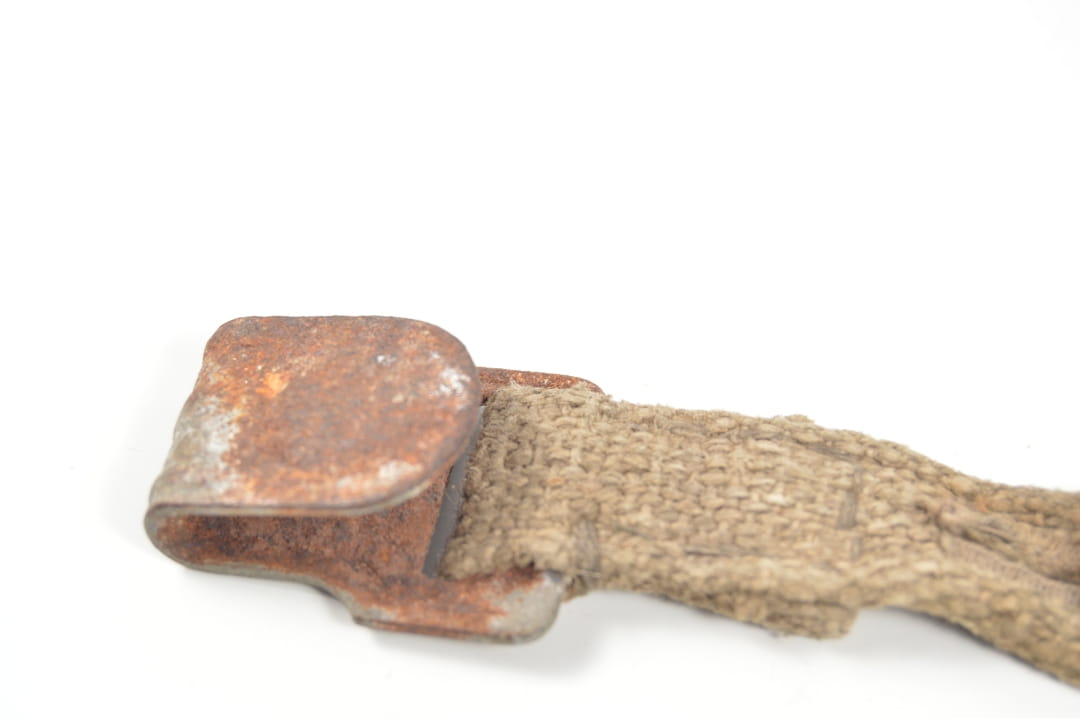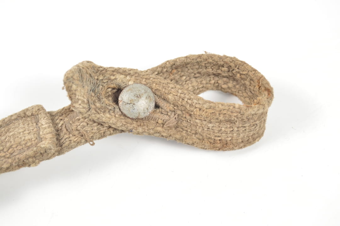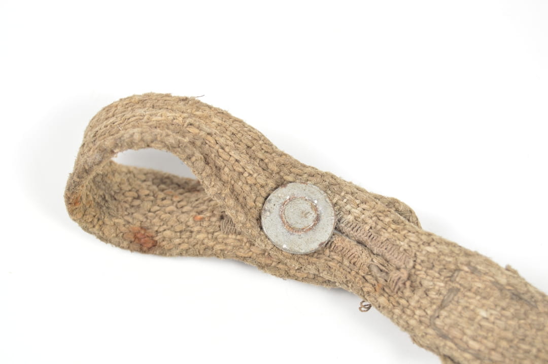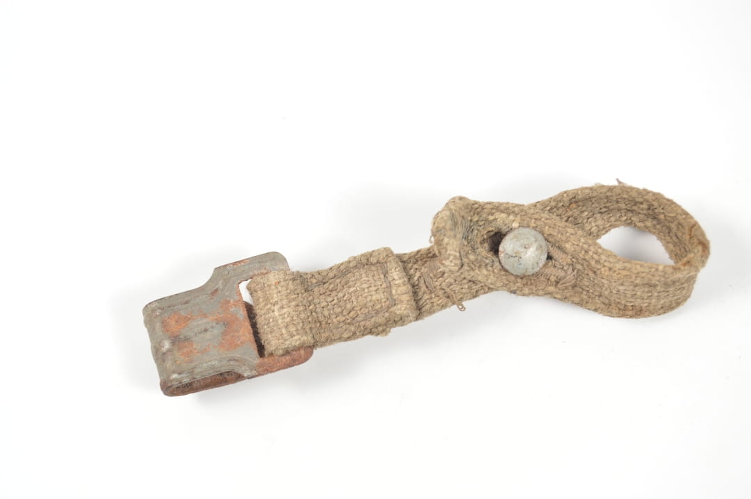 Krótki pasek od puszki na maskę przeciwgazową. Stan zachowania dobry.