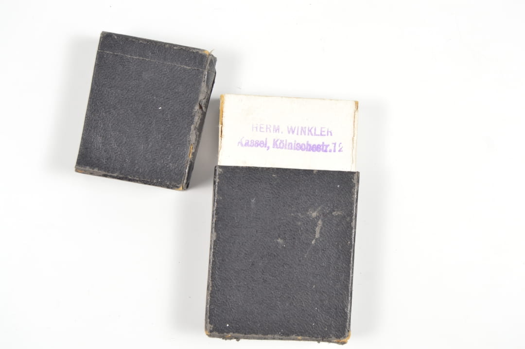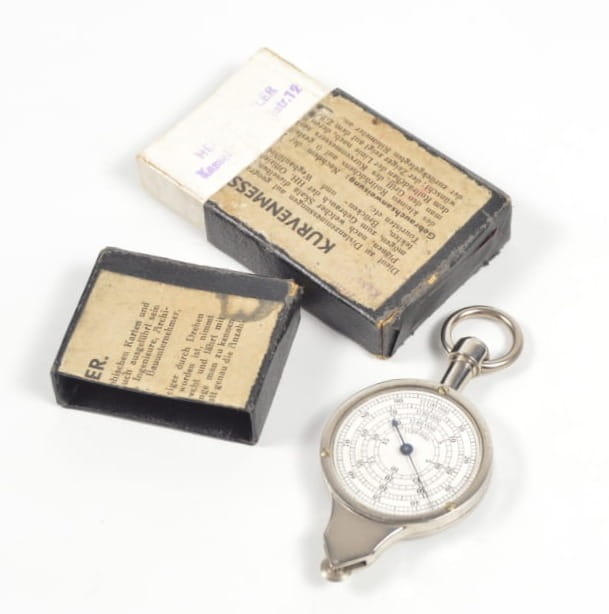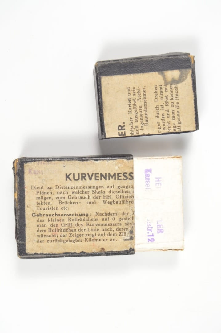 Na opakowaniu od krzywomierza sygnatura producenta HERM. WINKLER Kassel, Kölnischestr. 12