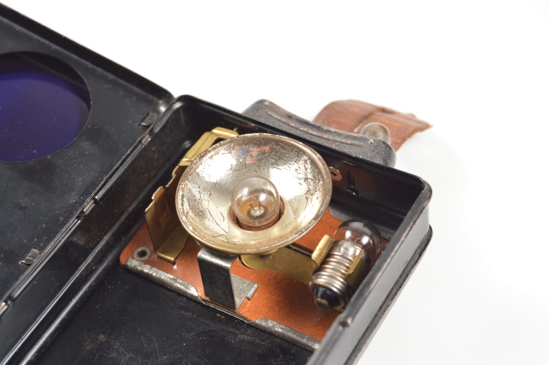 Latarka w oryginalnej farbie, posiada oryginalny pasek nośny