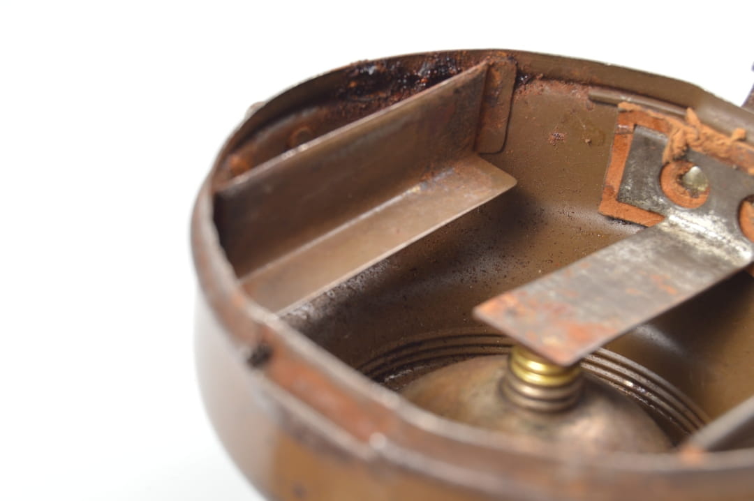 W środku latarki znajdują się ogniska rdzy.