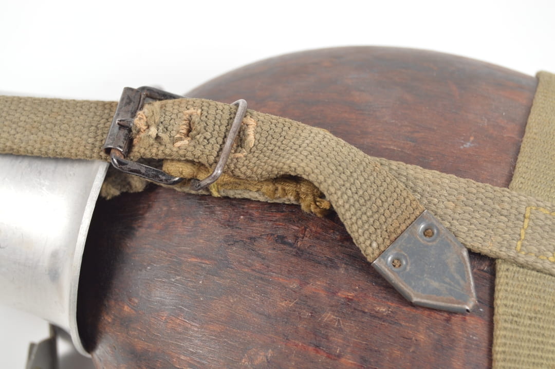 Butla manierki wykonana z aluminium pokryta prasowanym drewnem, sygnowana HRE 43 czyli Heinrich Ritter,