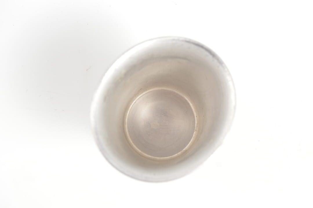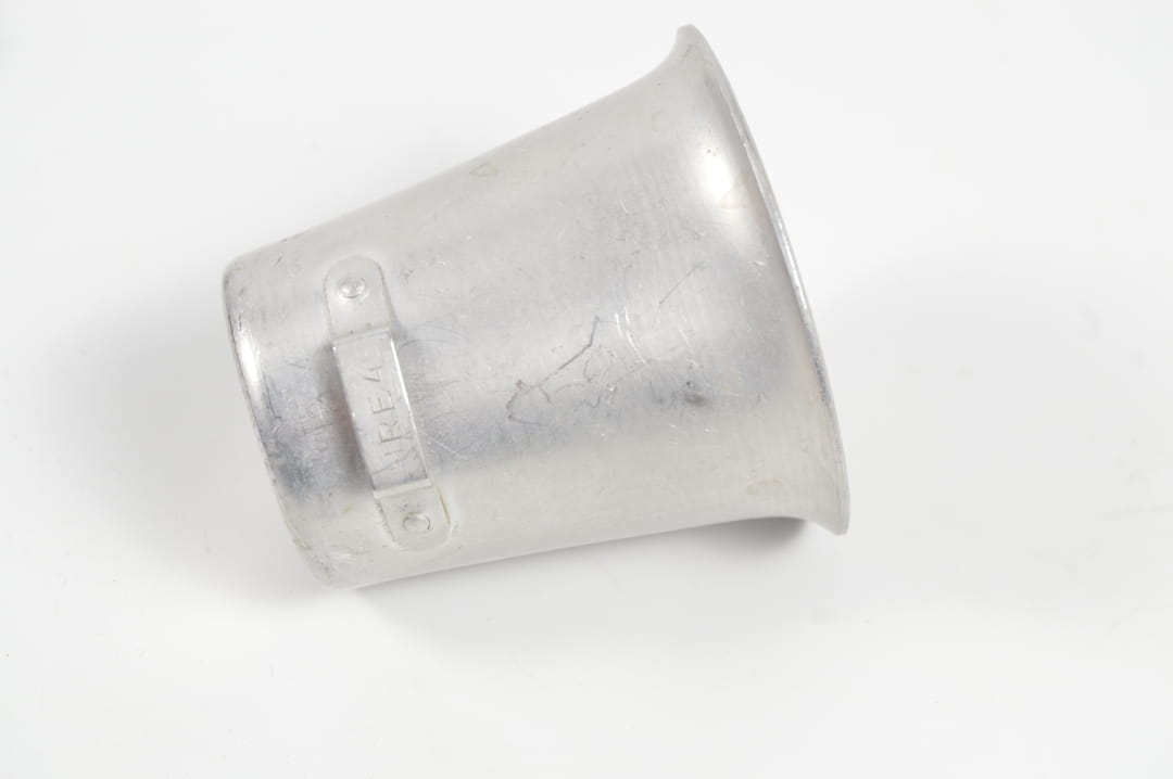 Kieliszkowy kubek, wykonany z aluminium, sygnowany HRE 45, czyli Heinrich Ritter, Esslingen 1945 rok .