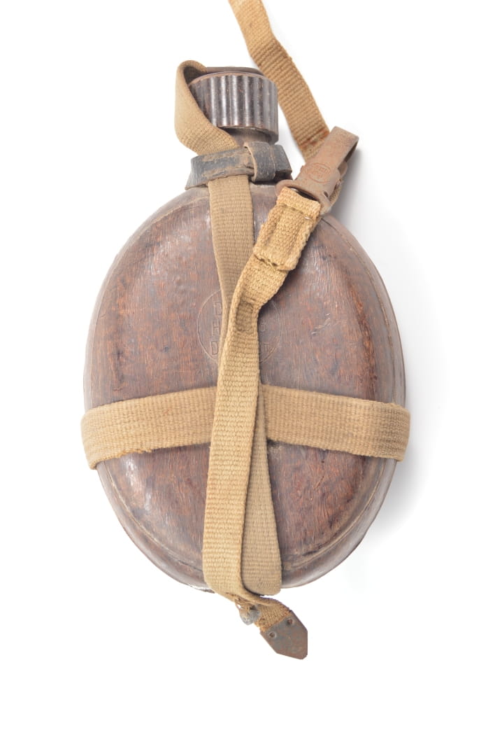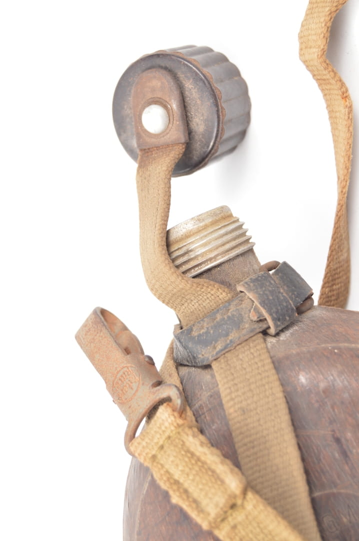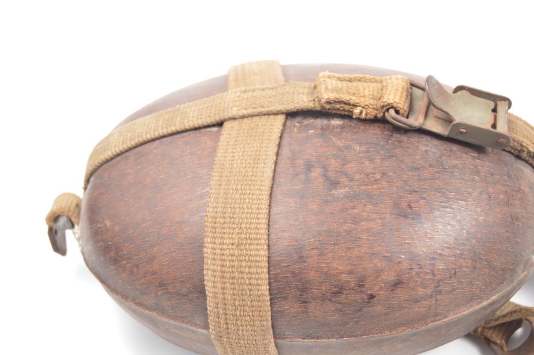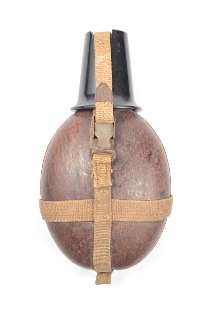 Butla manierki wykoanna z aluminum pokryta prasowanym drewnem, sygnowana HRE 43 czyli Heinrich Ritter,