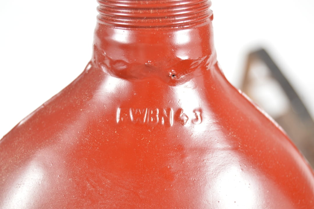 Butla stalowa, malowana na kolor czerwony sygnowana FWBN 43, czyli F.W. Brockelmann Aluminiumwerk GmbH