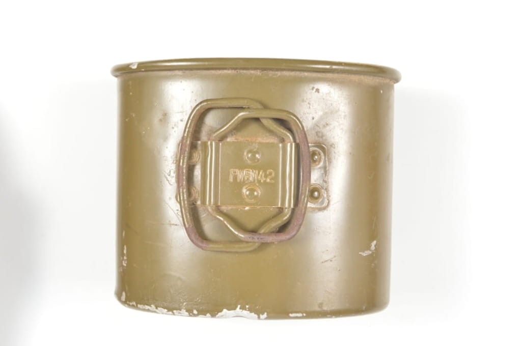 Kubek w oryginalnej farbie sygnowany FWBN 42, czyli F.W. Brockelmann Aluminiumwerk GmbH KG,