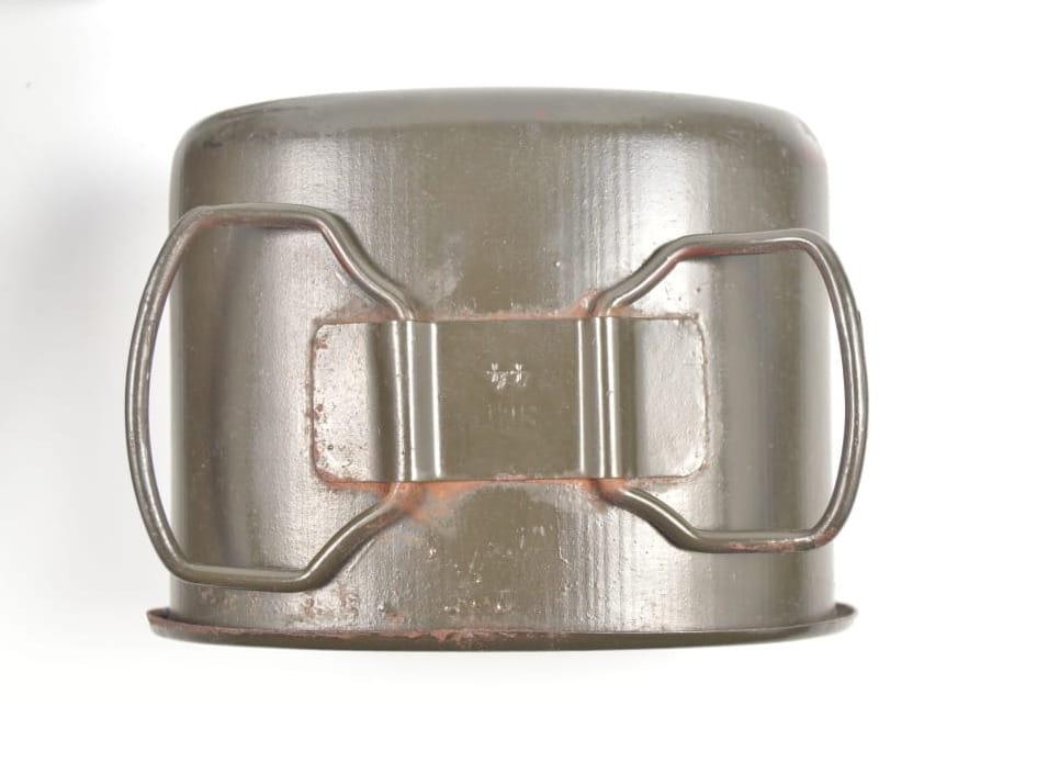 Kubek w oryginalnej farbie sygnowany SMM 44, czyli Süddeutsche Metallwarenfabrik, Mussbach 1944 rok
