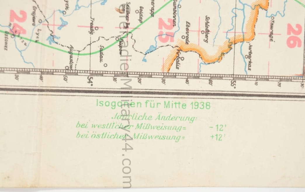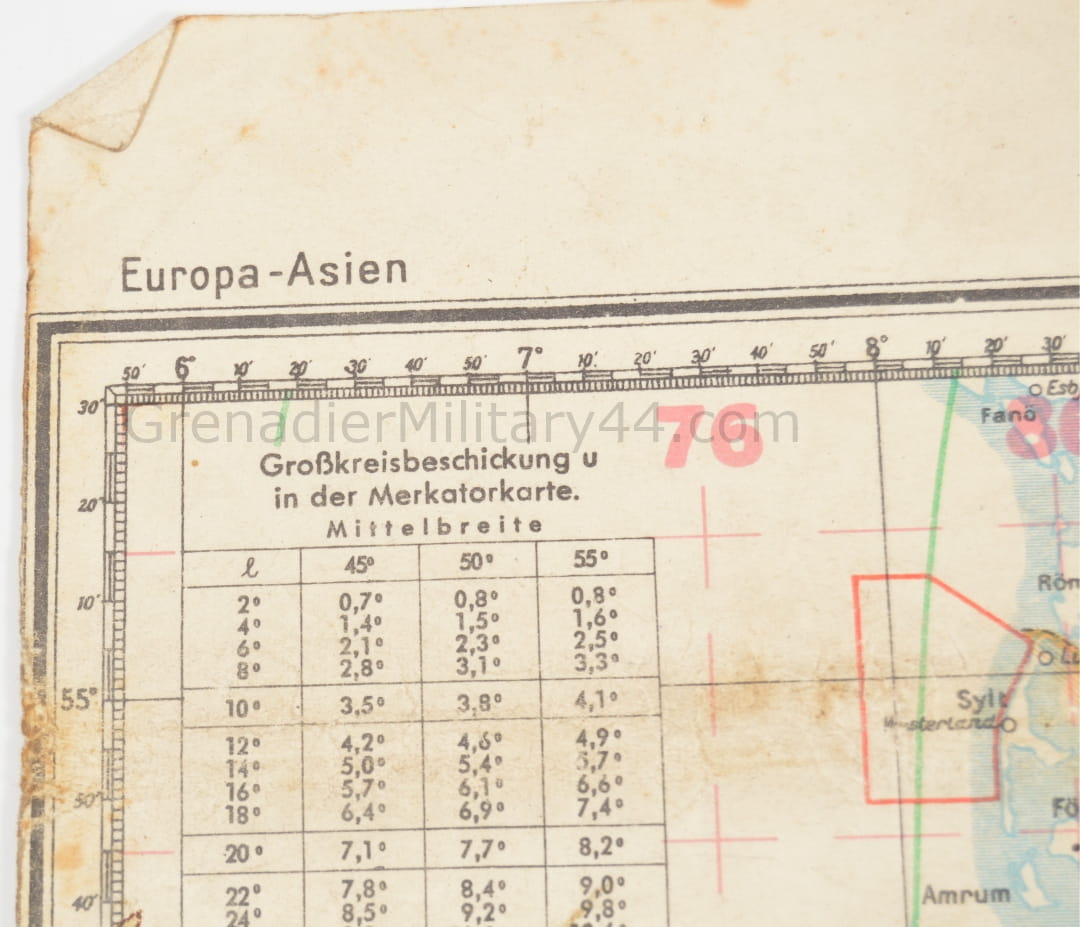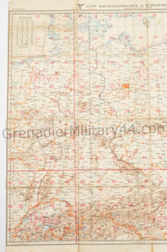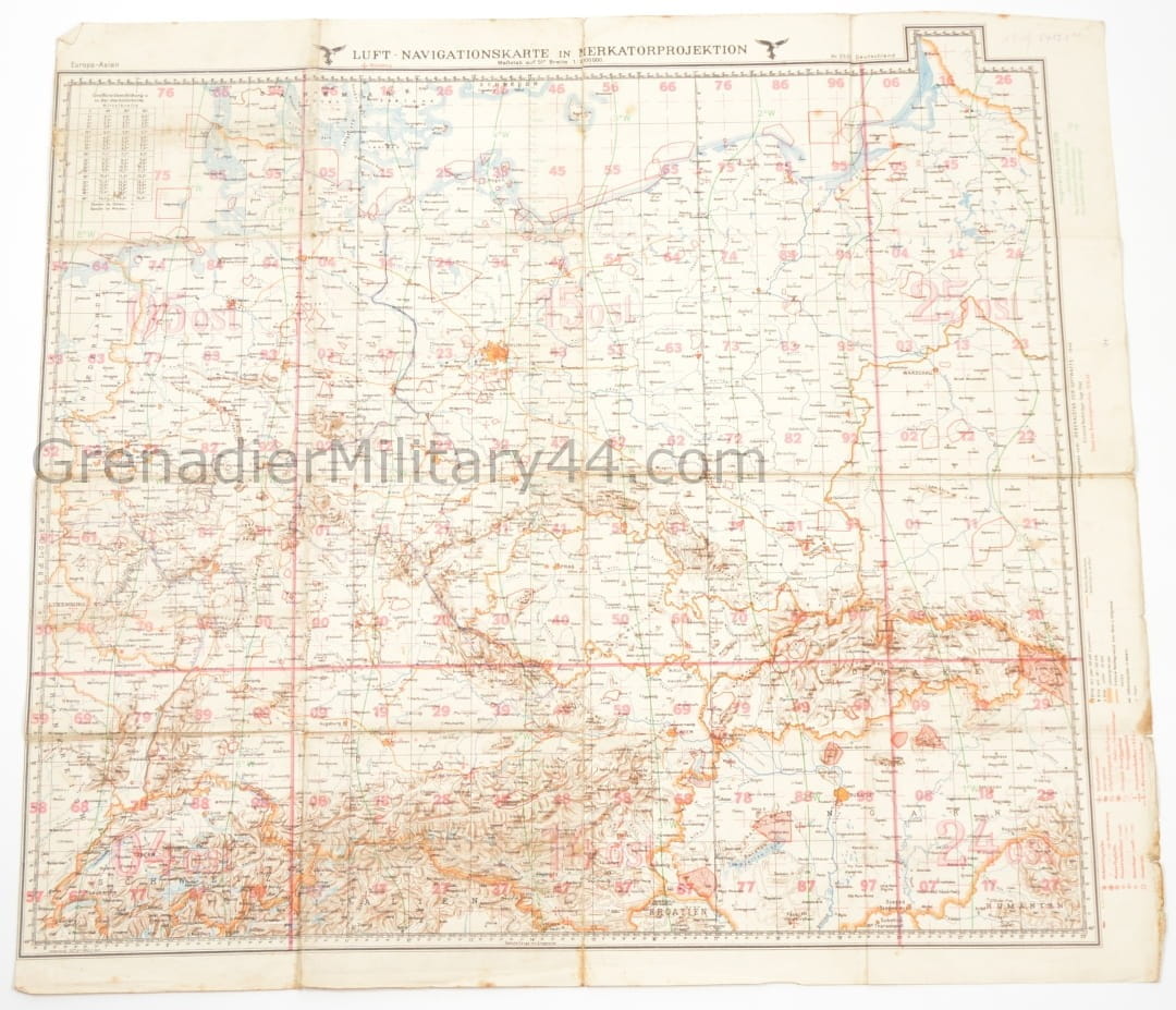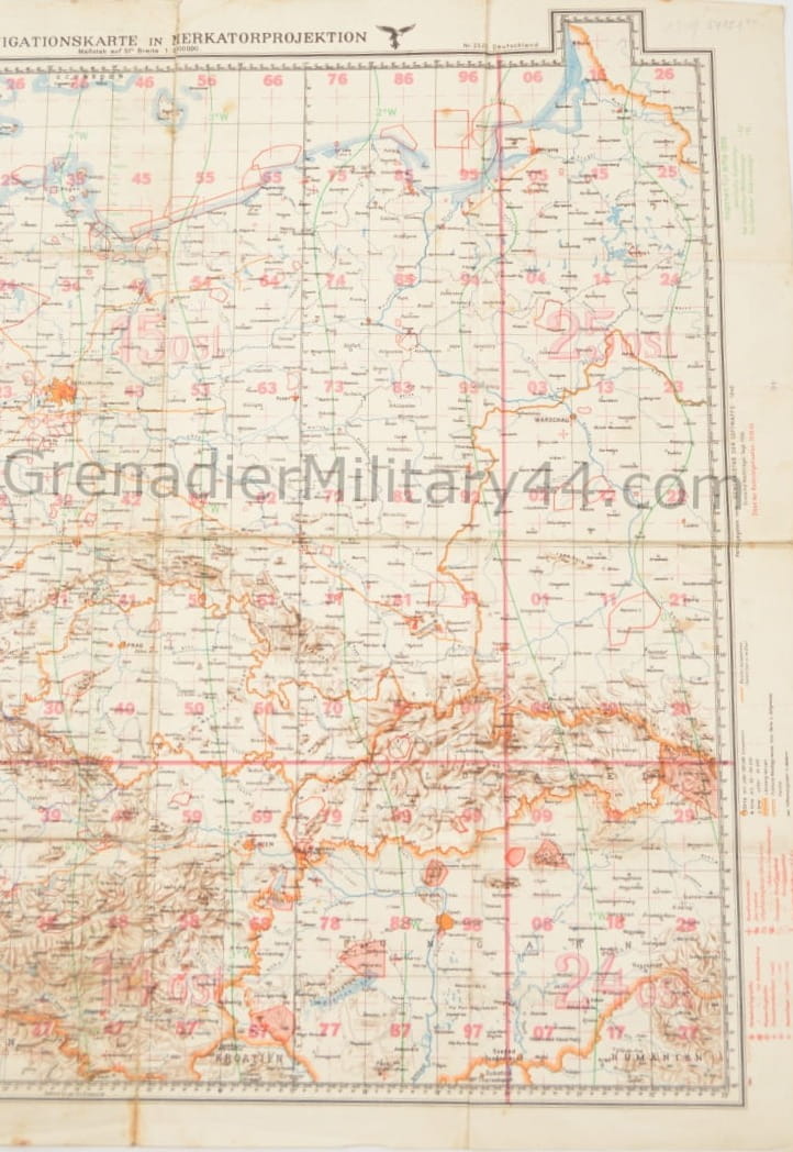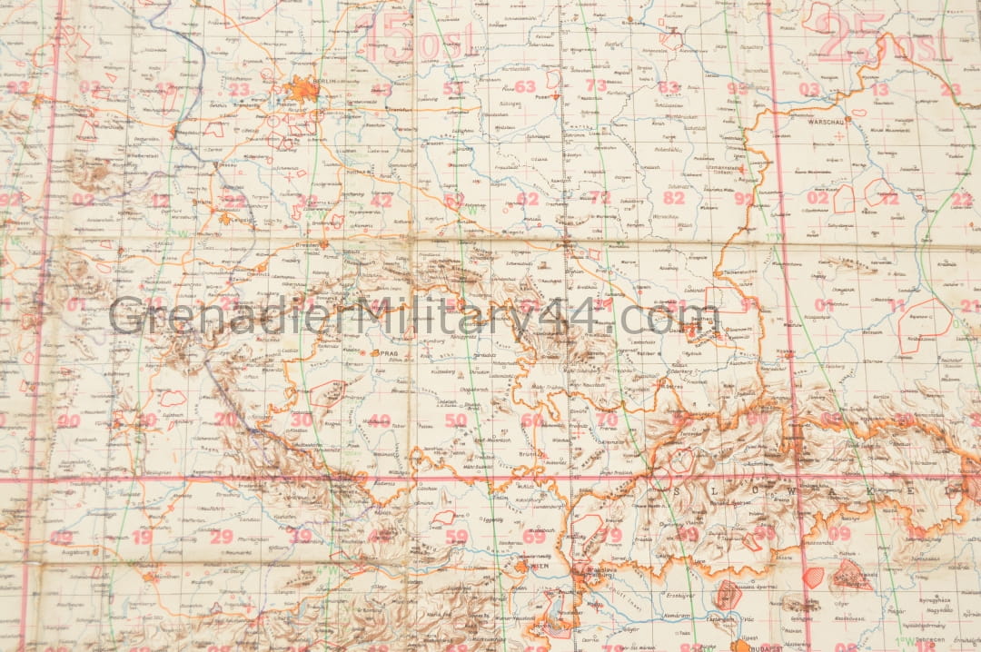 Mapa nawigacyjna Luftwaffe z 1938 roku przedstawiająca Europę środkowo- wschodnią.