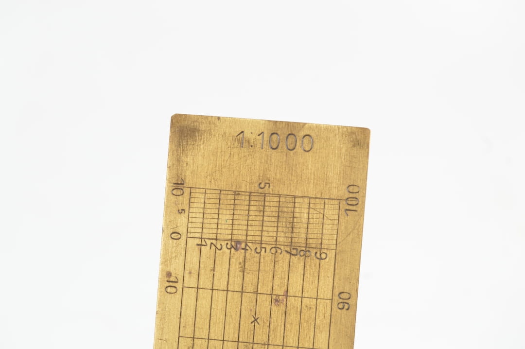 Mosiężna linijka skalowa wykonana z mosiądzu sygnowana logiem producenta Gebrüder Haff