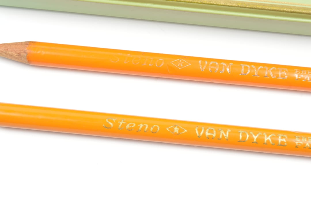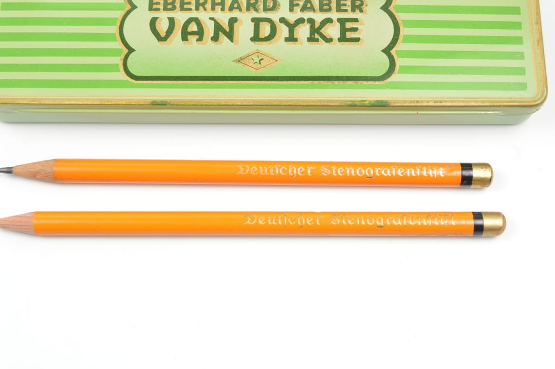 Zestaw ołówków w pudełku, z przeznaczeniem do spisywania stenogramów.