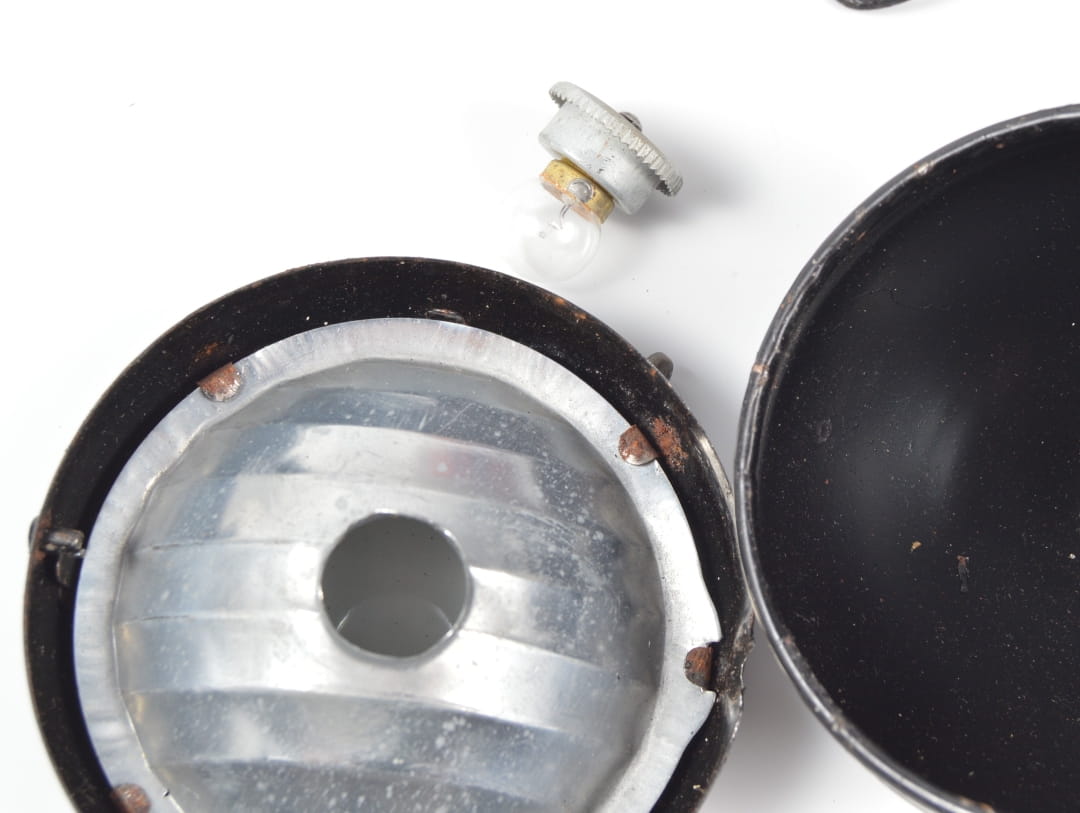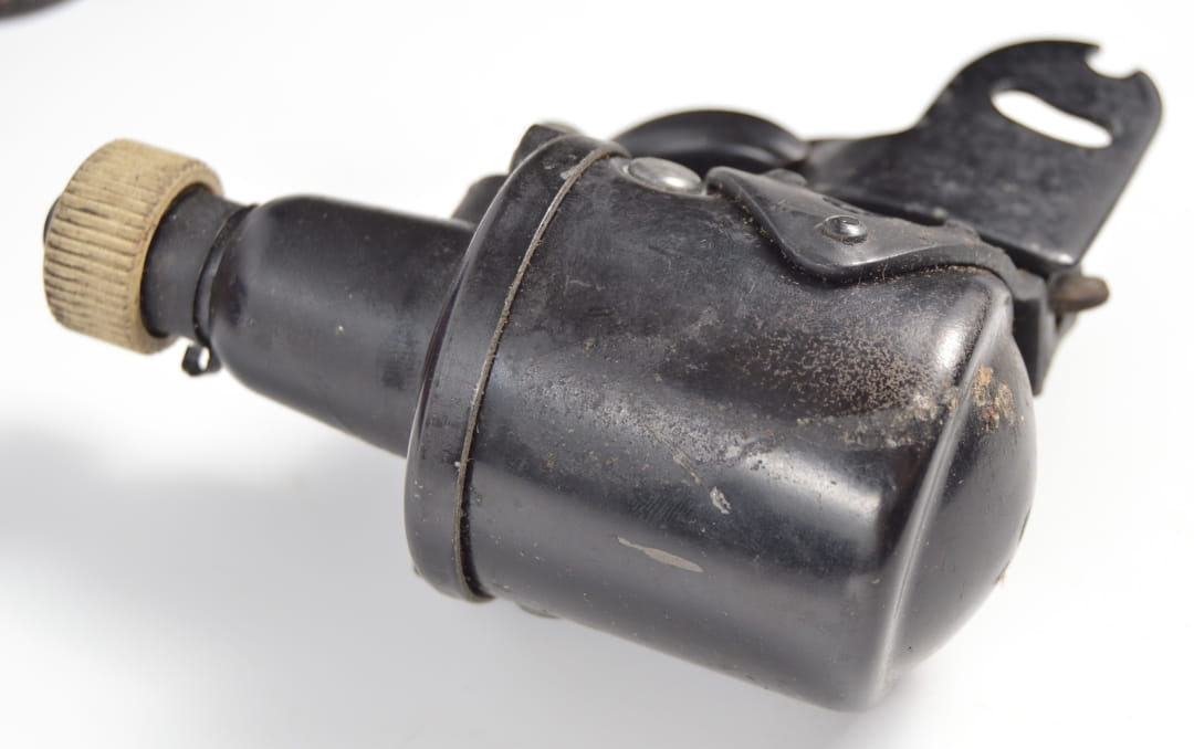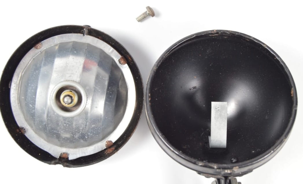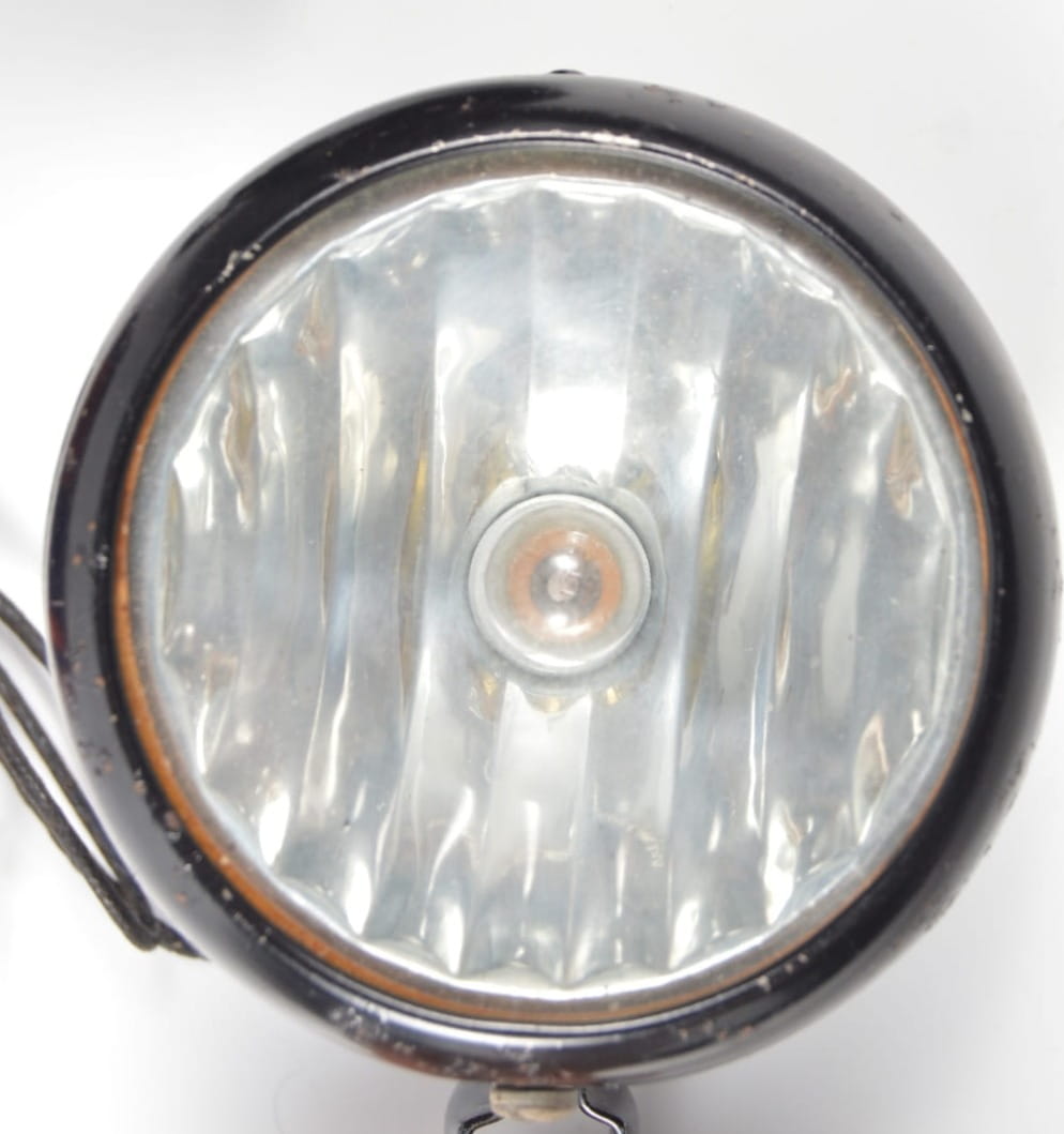 Lampa rowerowa nigdy nie używana, sygnowana PTR131S, w oryginalnej czarnej farbie, w zestawie fabryczna żarówka.