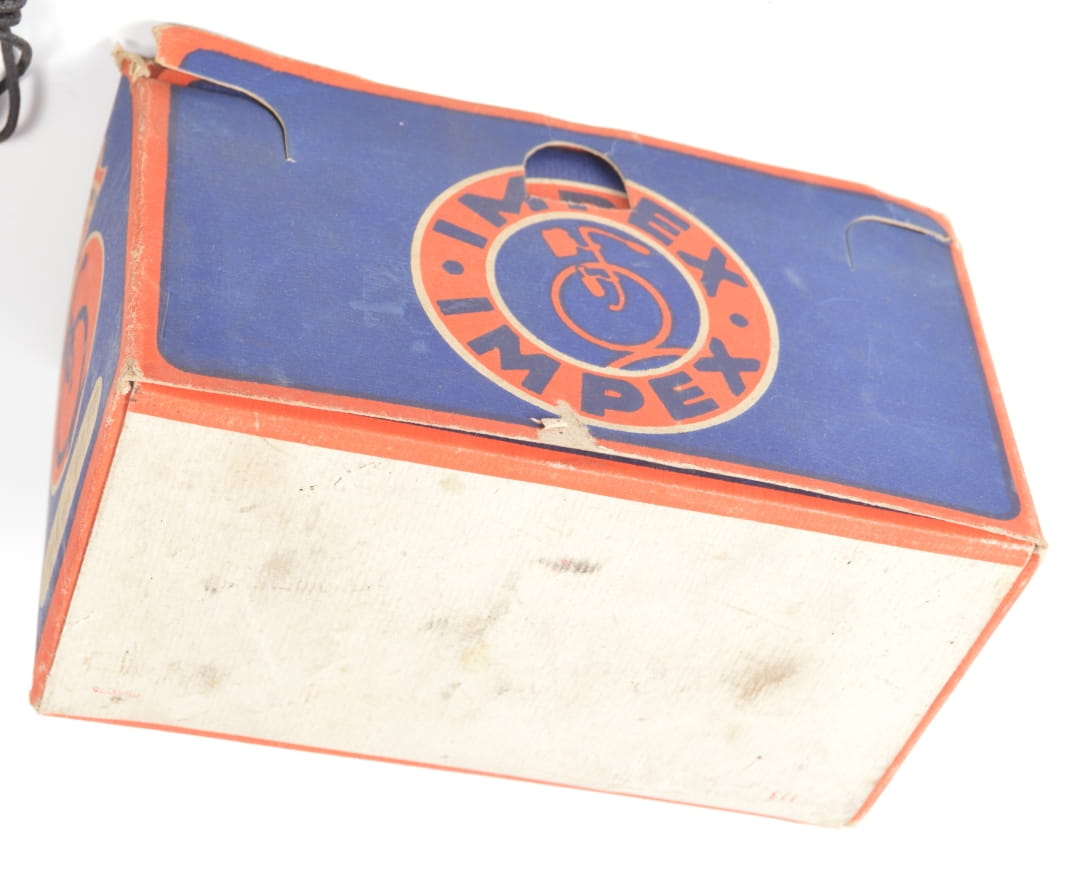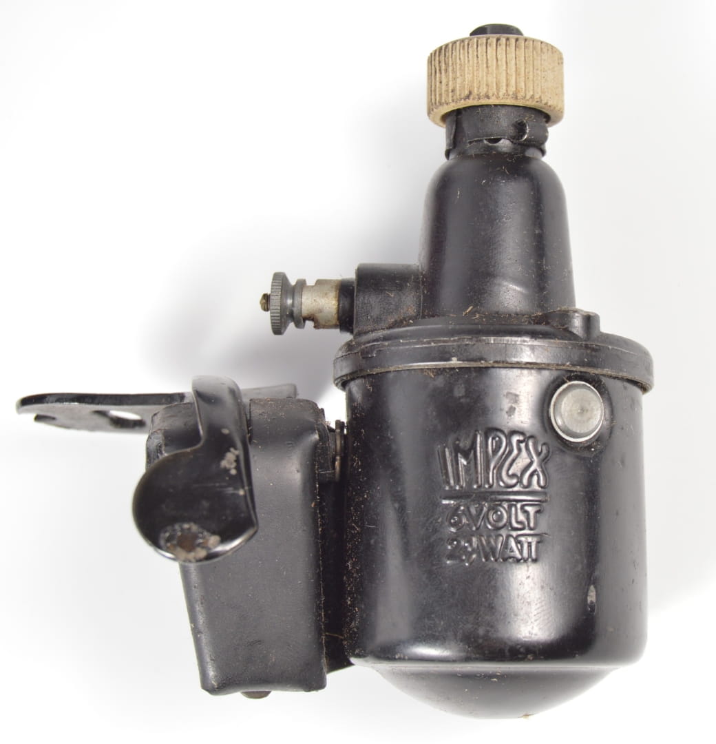 Zestaw do oświetlenia roweru Truppenfahrrad firmy IMPEX, składający się z: dynama, lampy przedniej oraz kabla