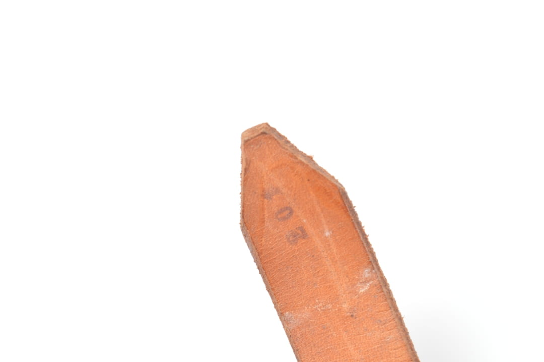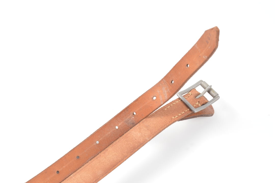 Pasek opinający od plecaka strzelców górskich. Pasek jest pełnej długości. Skóra zachowana w bardzo dobrym stanie,