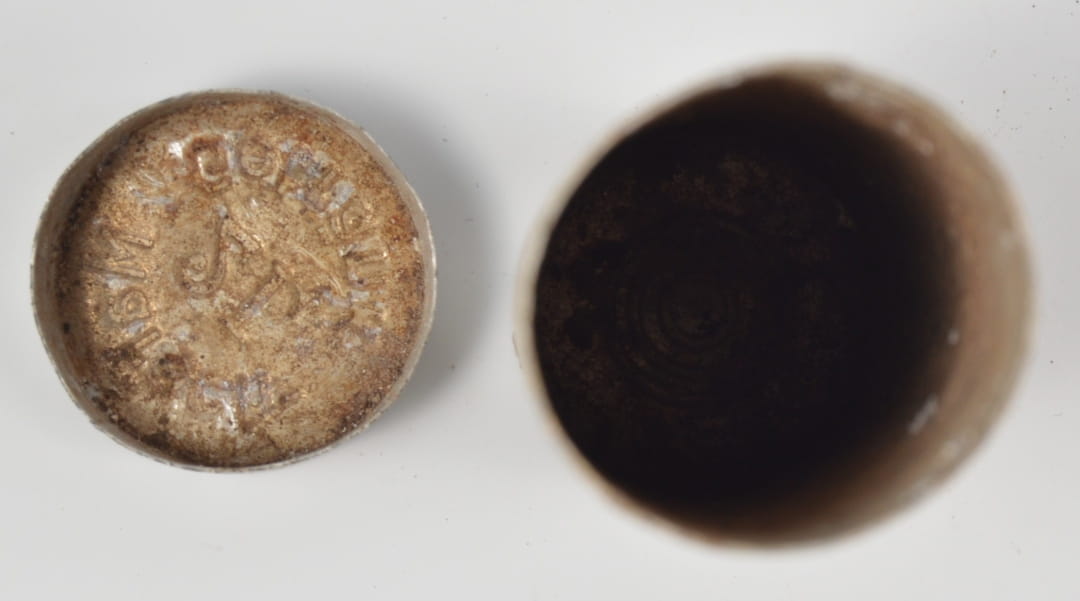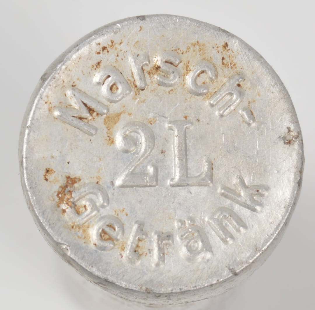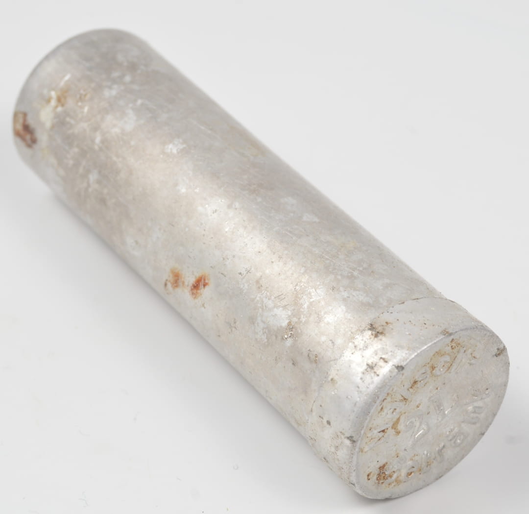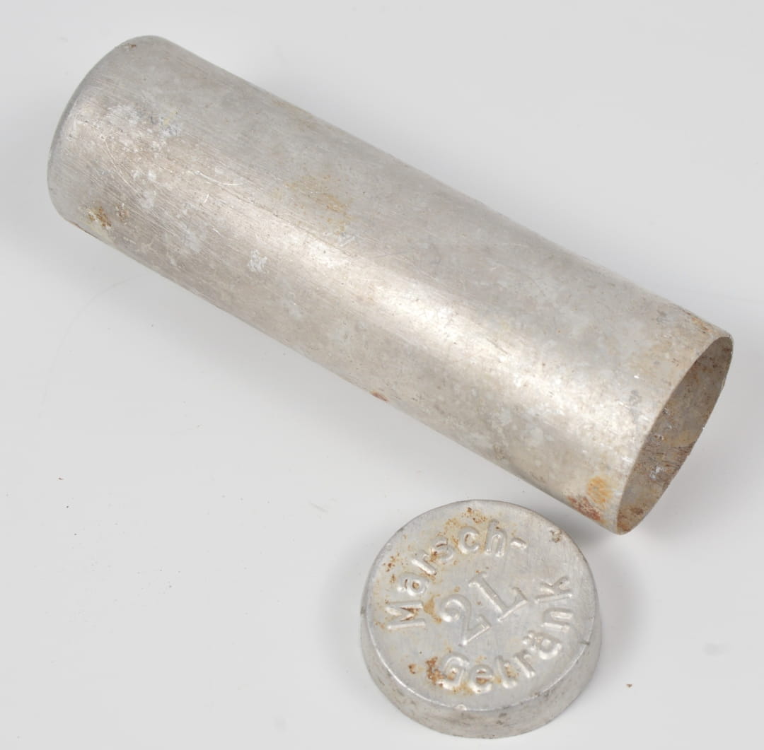 Pojemniczek na tabletki marszowe( Marsch-Getränk) do picia. Pojemnik w stanie dobrym, bez dziur, wykonany z aluminium.