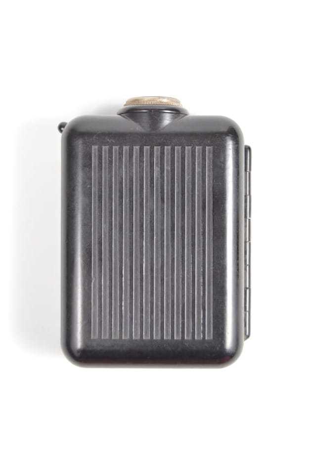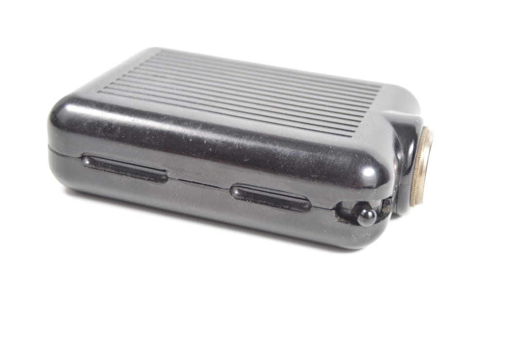 Rzadko spotykany pojemnik na baterie z zestawu Stirnlampe. Wykonany z bakelitu.