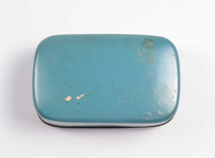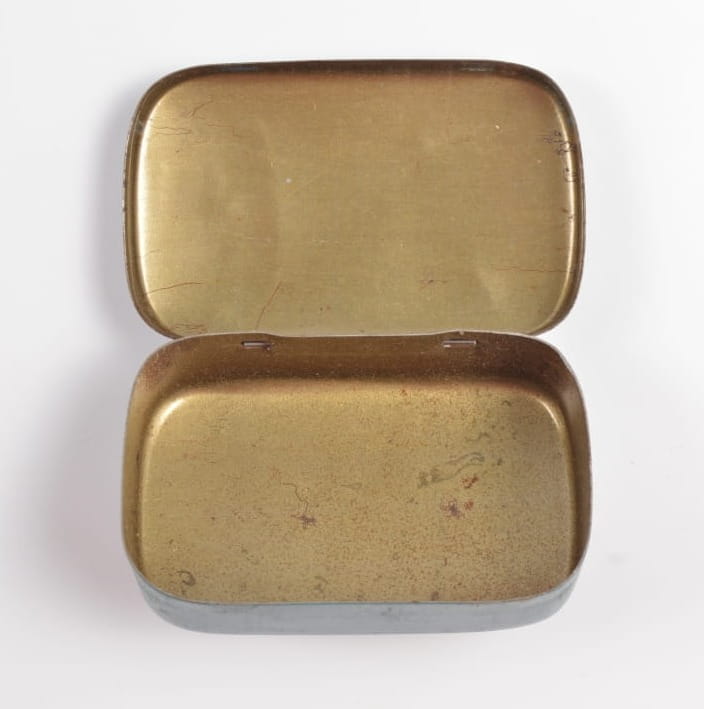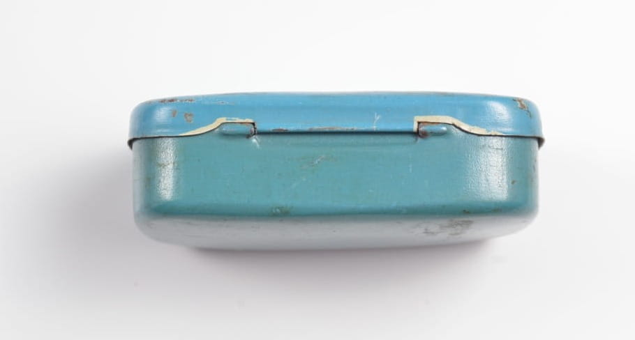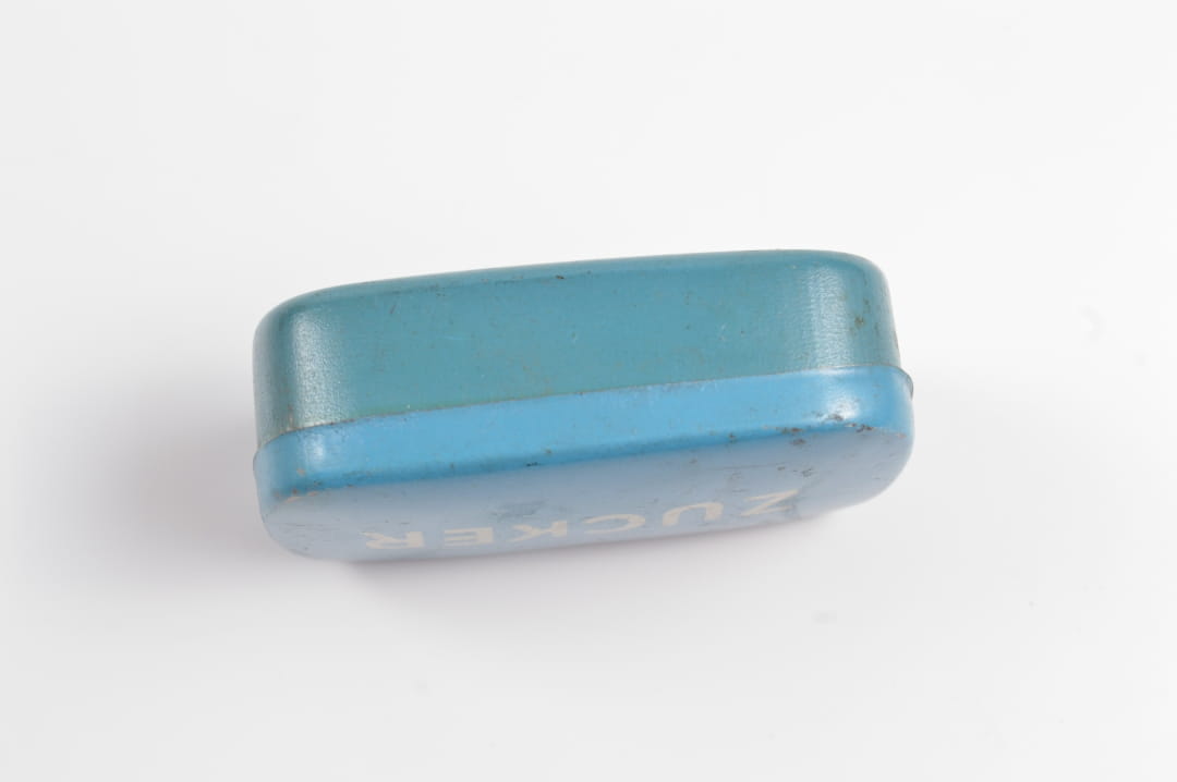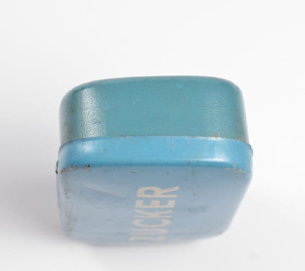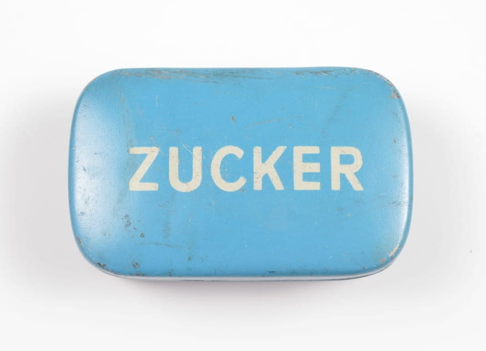 Pudełeczko z przeznaczeniem na cukier (ZUCKER). Stan zachowania bardzo dobry, orginalna farba , napis.