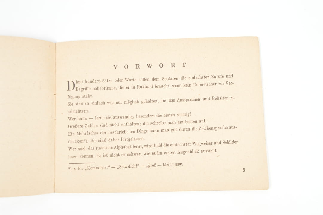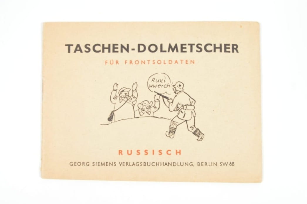 Słownik kieszonkowy niemiecko- rosyjski dla żołnierzy frontowych Wehrmachtu( TASCHEN-DOLMETSCHER FÜR FRONTSOLDATEN). Stan zachowania bardzo dobry, słownik kompletny.