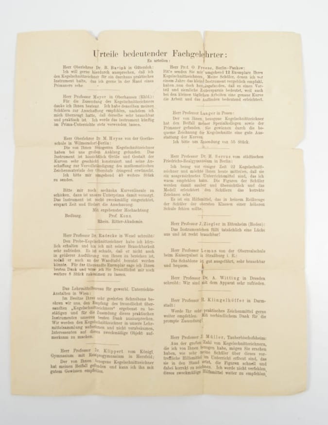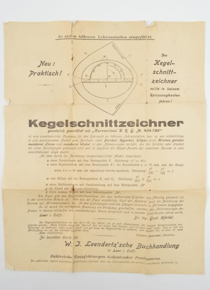 Szablon/ rysik do krzywych stożkowych (Kegelschnittzeichner) wraz z instrukcją.