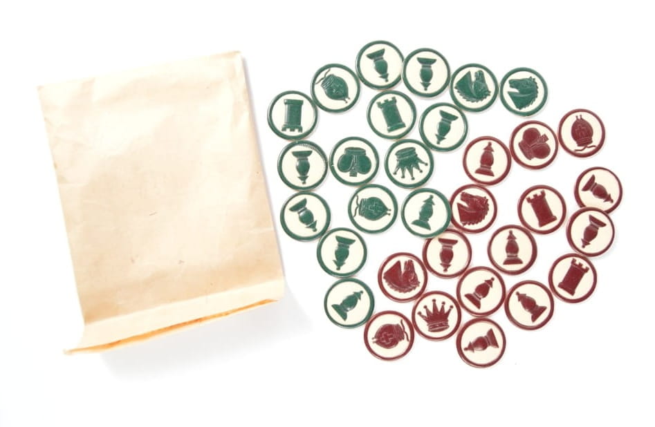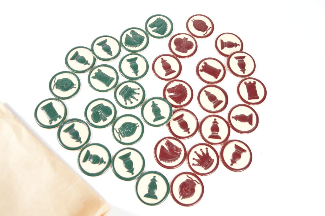 Zestaw szach/gry planszowej w pudełku poczty polowej (Feldpost).