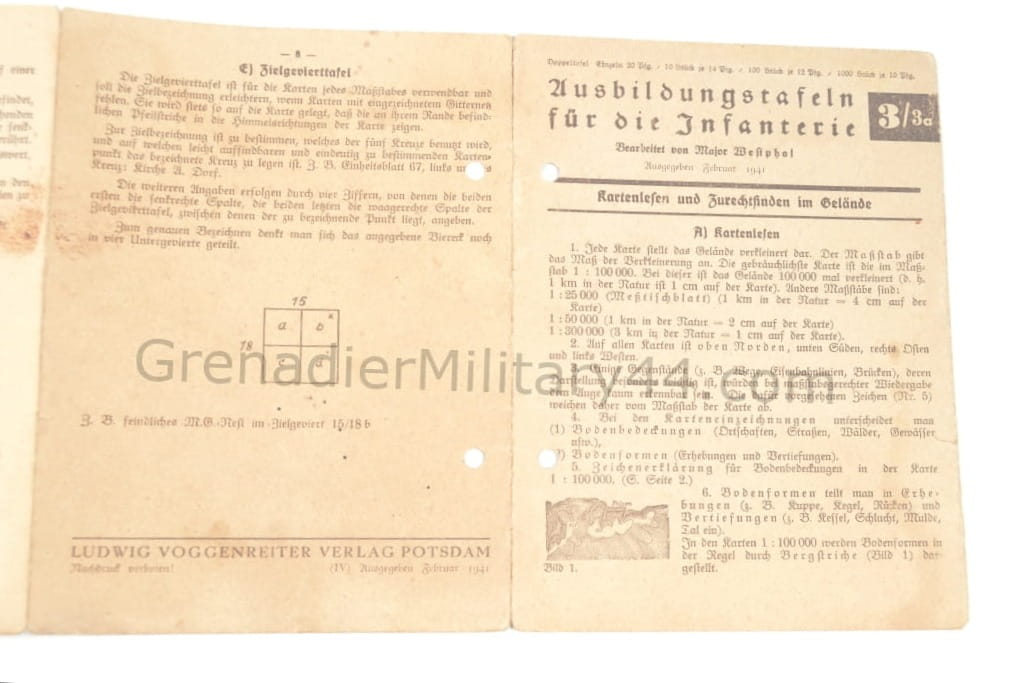 Tablice szkoleniowe dla piechoty( Ausbildungstafeln für die Infanterie) dotycząca nauki posługiwania się mapą oraz