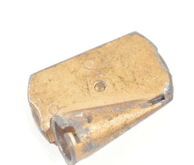 Temperówka wykonana z metalu, w komplecie oryginalna żyletka. Temperówka zamykana na śrubkę.