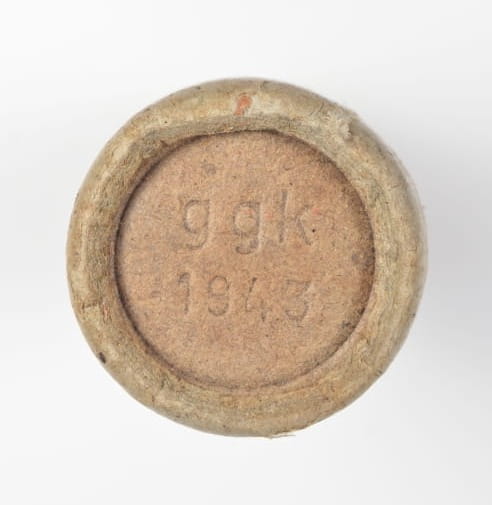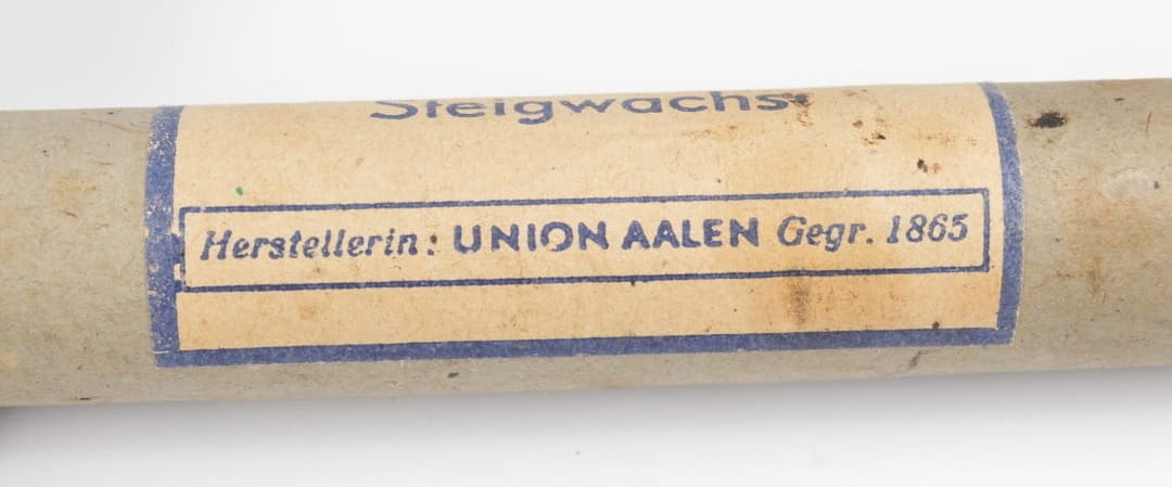 Wosk nigdy nie otwierany, przeznaczony do nart wojskowych. Wosk sygnowany producentem ggk oraz rokiem 1943.