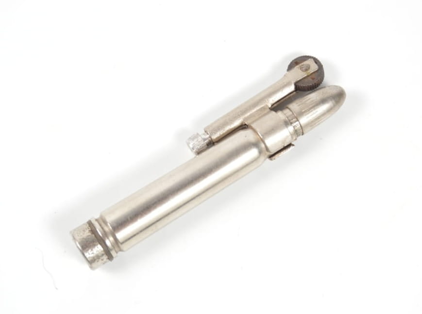 Zapalniczka w stanie dobrym- brak knota. Zapalniczka rozbieralna, wyprodukowana w 1944 roku.