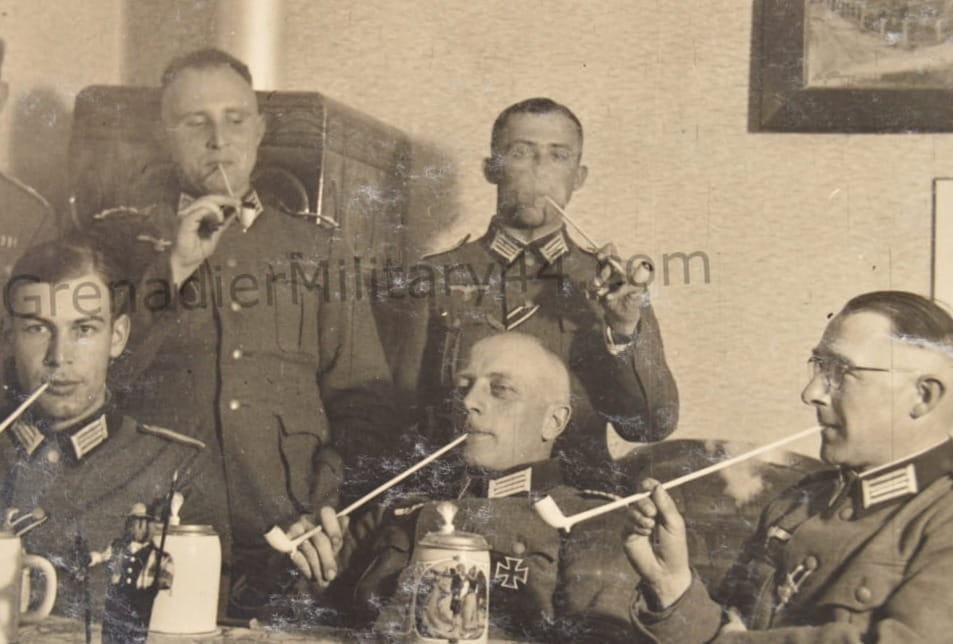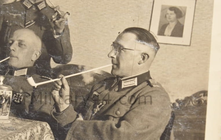 Zdjęcie przedstawiające oficerów podczas relaxu. Na odwrocie zdjęcia adnotacja z datą Maj 1941 rok oraz oznaczeniem
