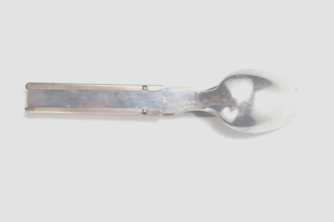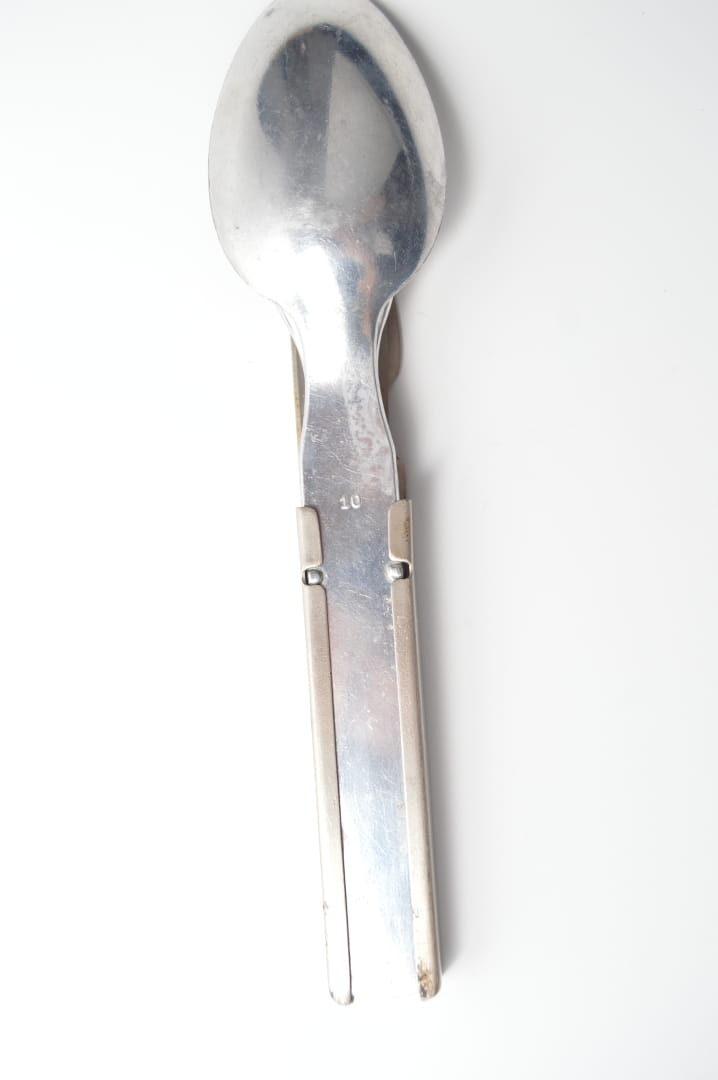 Widelec jak i łyżka wykonane z aluminium. Na końcówce łyżki delikatne zużycie.