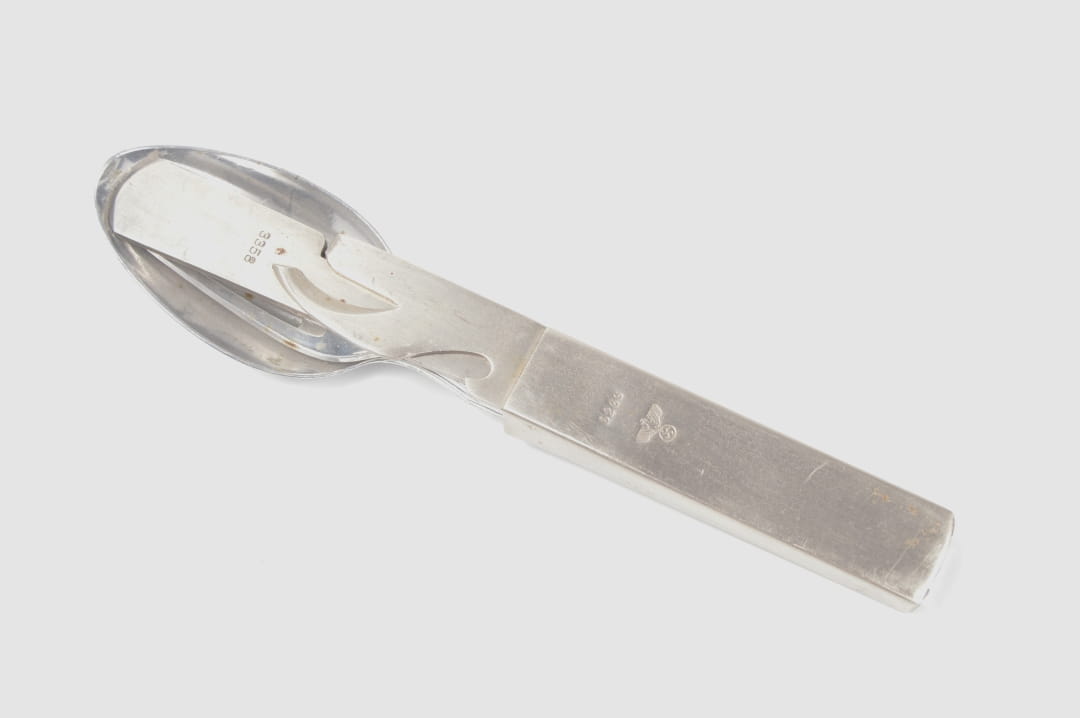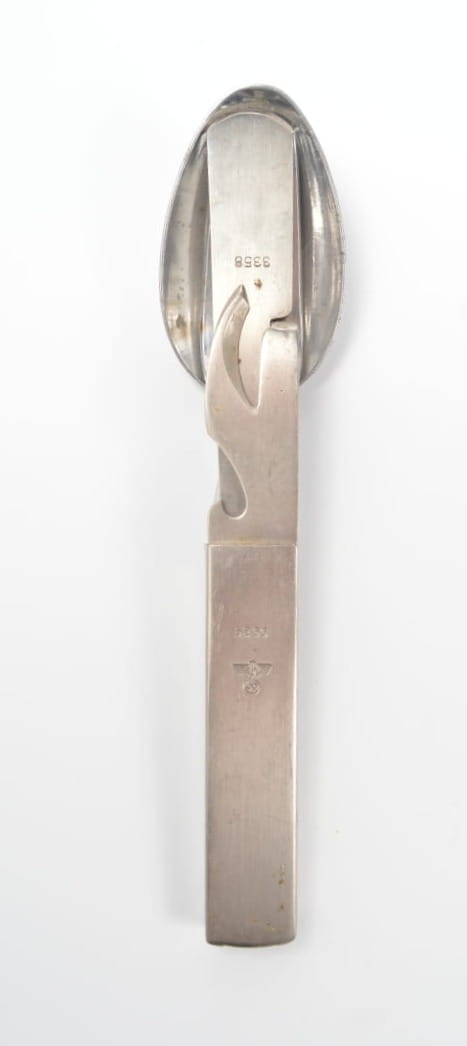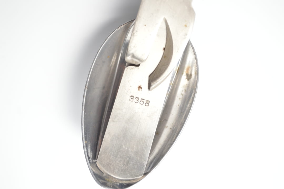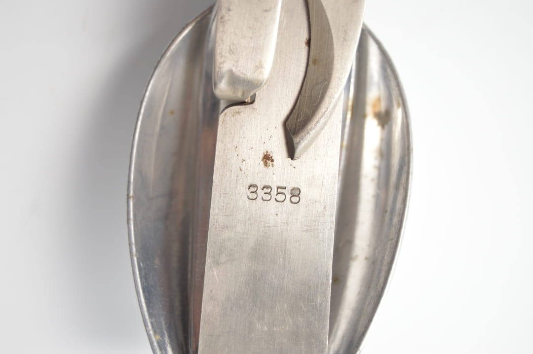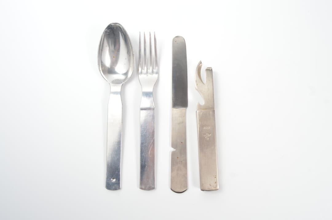 Zestaw (Feldbesteck) składający się z otwieracza, łyżki, widelca i noża- stanowi integralny komplet od zakończenia wojny.