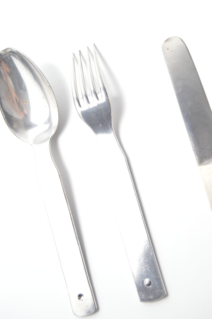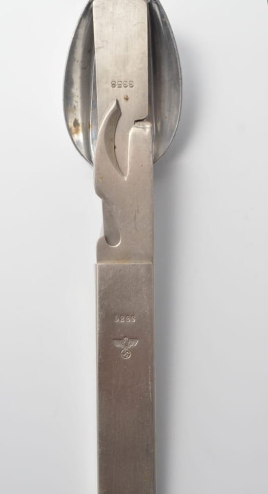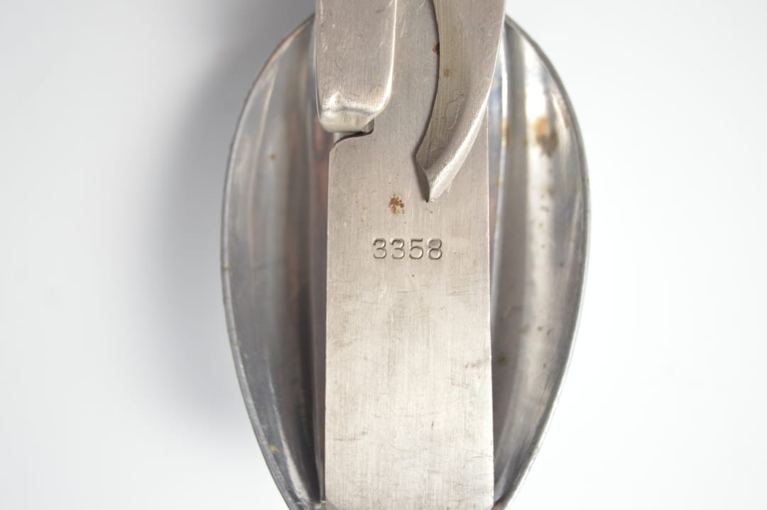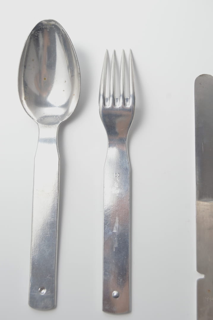 Zestaw (Feldbesteck) składający się z otwieracza, łyżki, widelca i noża- stanowi integralny komplet od zakończenia wojny.