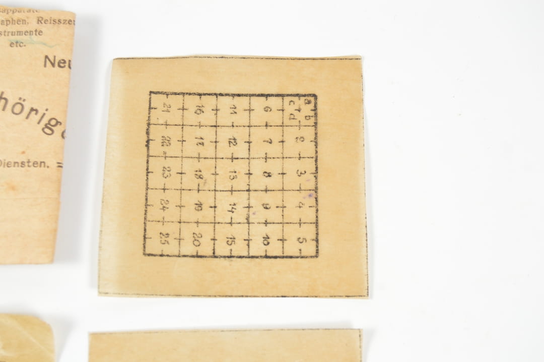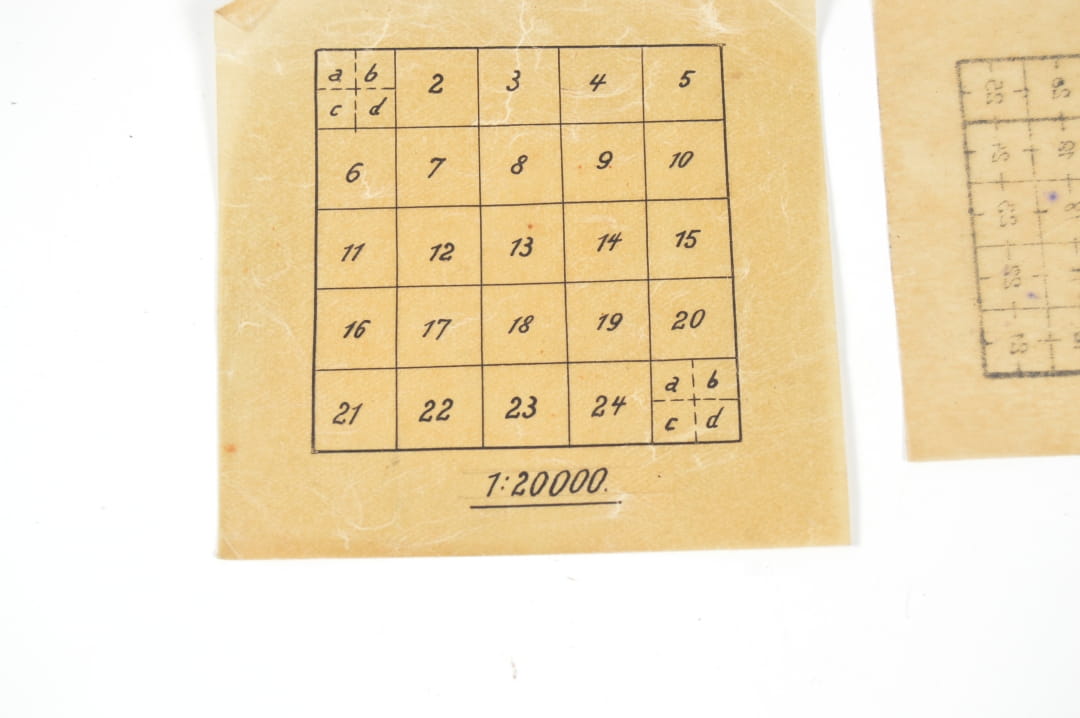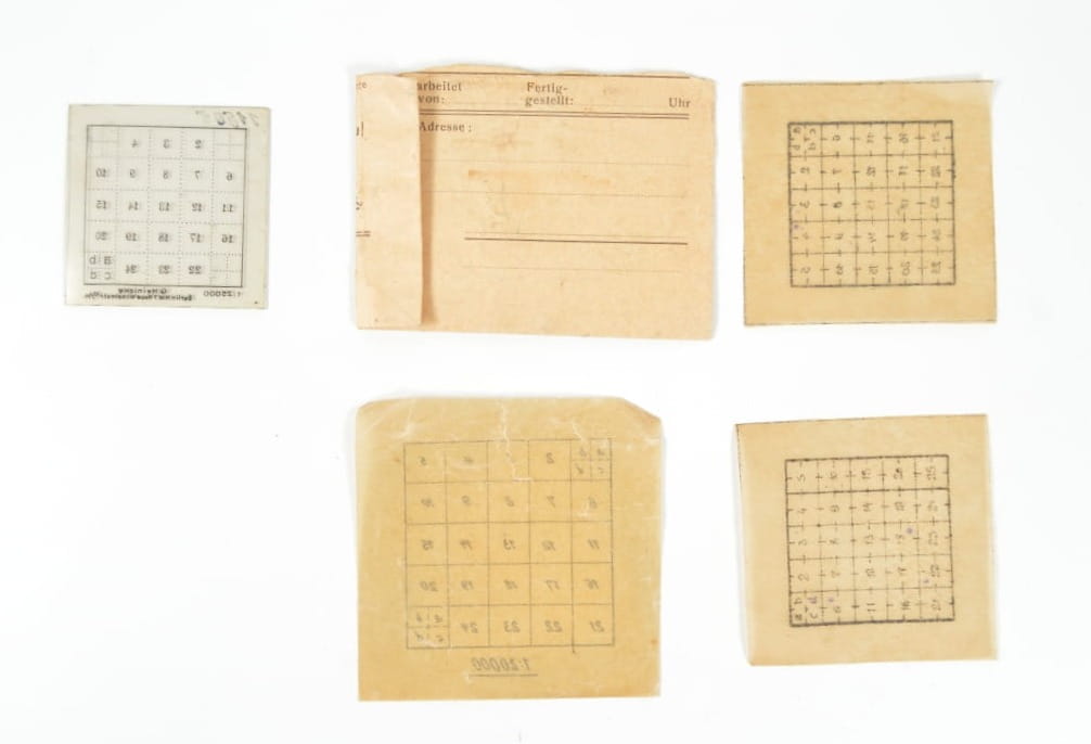 Zestaw czterech siatek kartograficznych do mapnika. Trzy siatki są wykonane z pergaminu a jedna jest wykonana z tworzywa (sygnowana G. Heinicke. Berlin N.W.7 Neue Wilhelmstr. 12/14.).