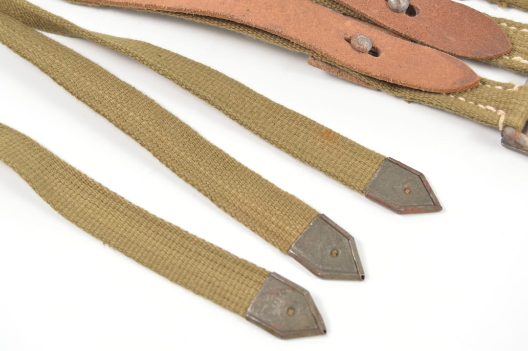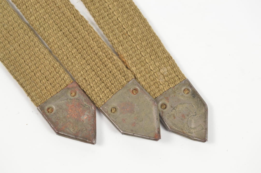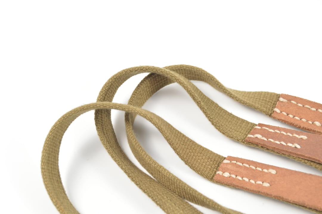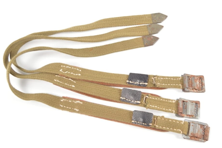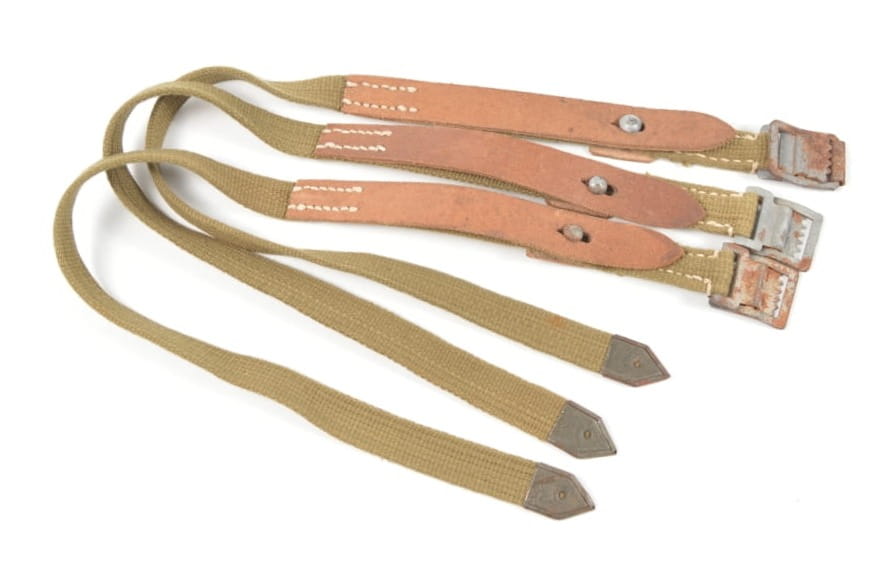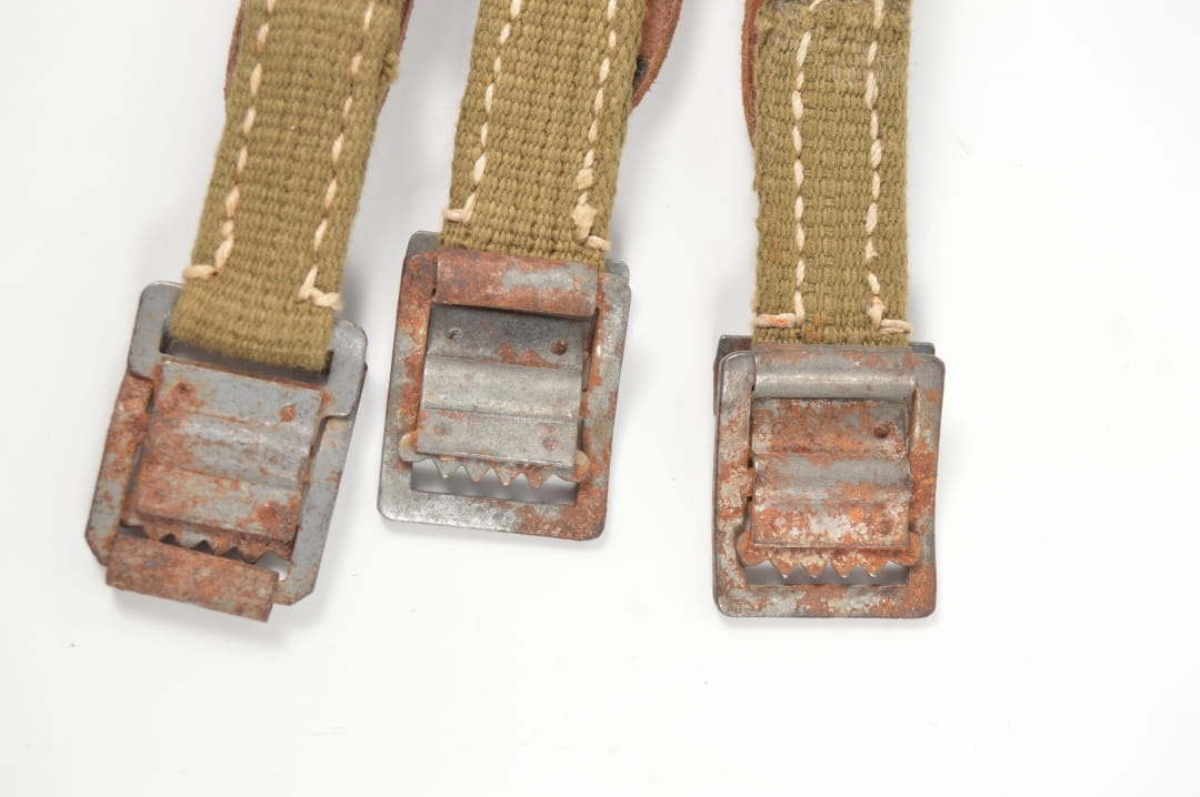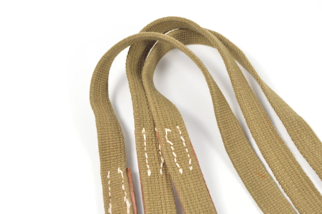 Zestaw trzech troków parcianych. Troki w stanie bardzo dobrym. Dwa troki o długości 55cm i jeden o 56cm.